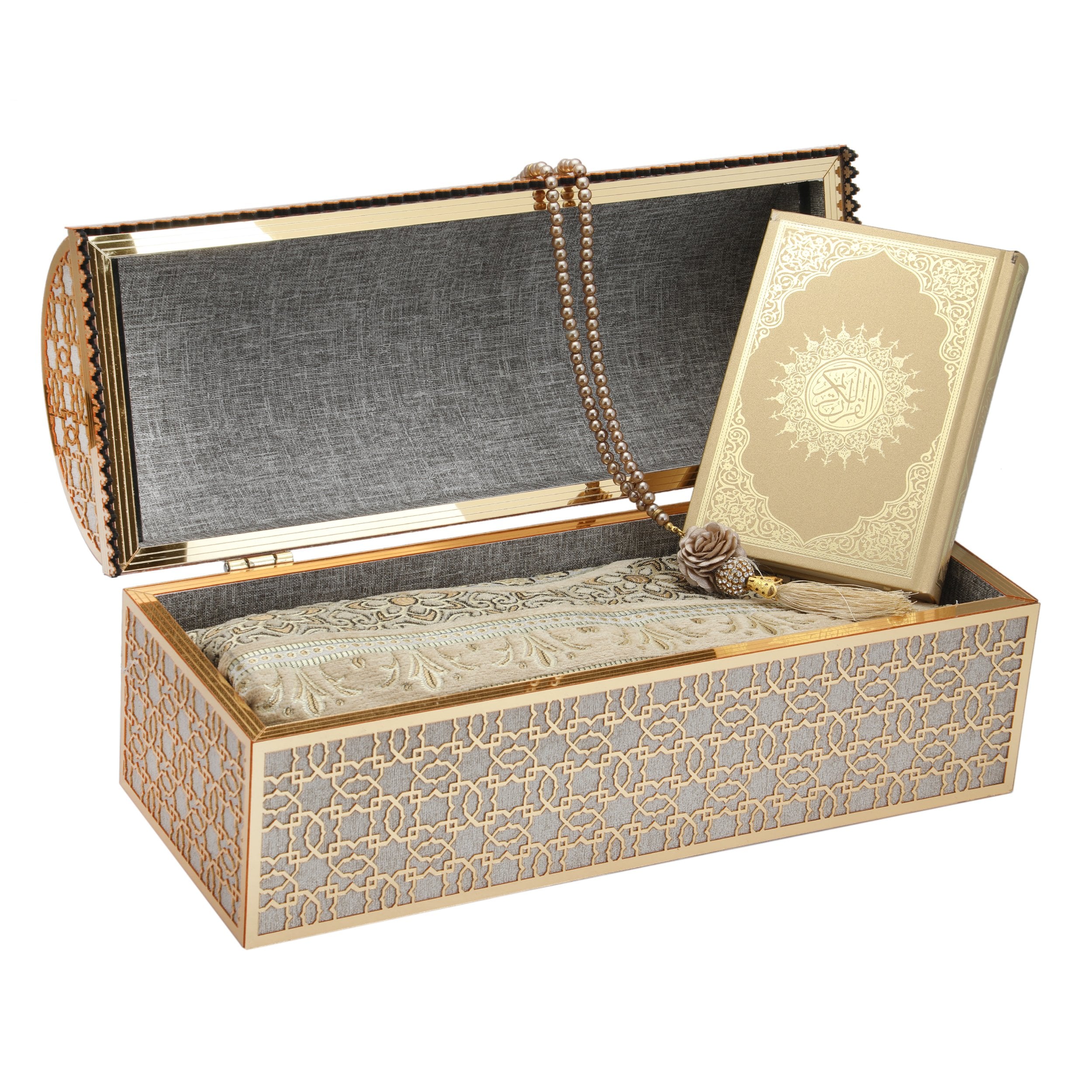 38x15x18 Cm Hediyelik Seccade Kuran-ı Kerim Tesbih Sandık Set