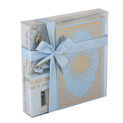 - Asetat kutu içerisinde 99'luk 6 mm Tasarım Tül Güllü Tesbih, 70x110 Tafta Seccade, 17x25 Cm Orta Boy Kuran-ı Kerim ve Kabe Örtüsü Koku ile beraber sunulur.