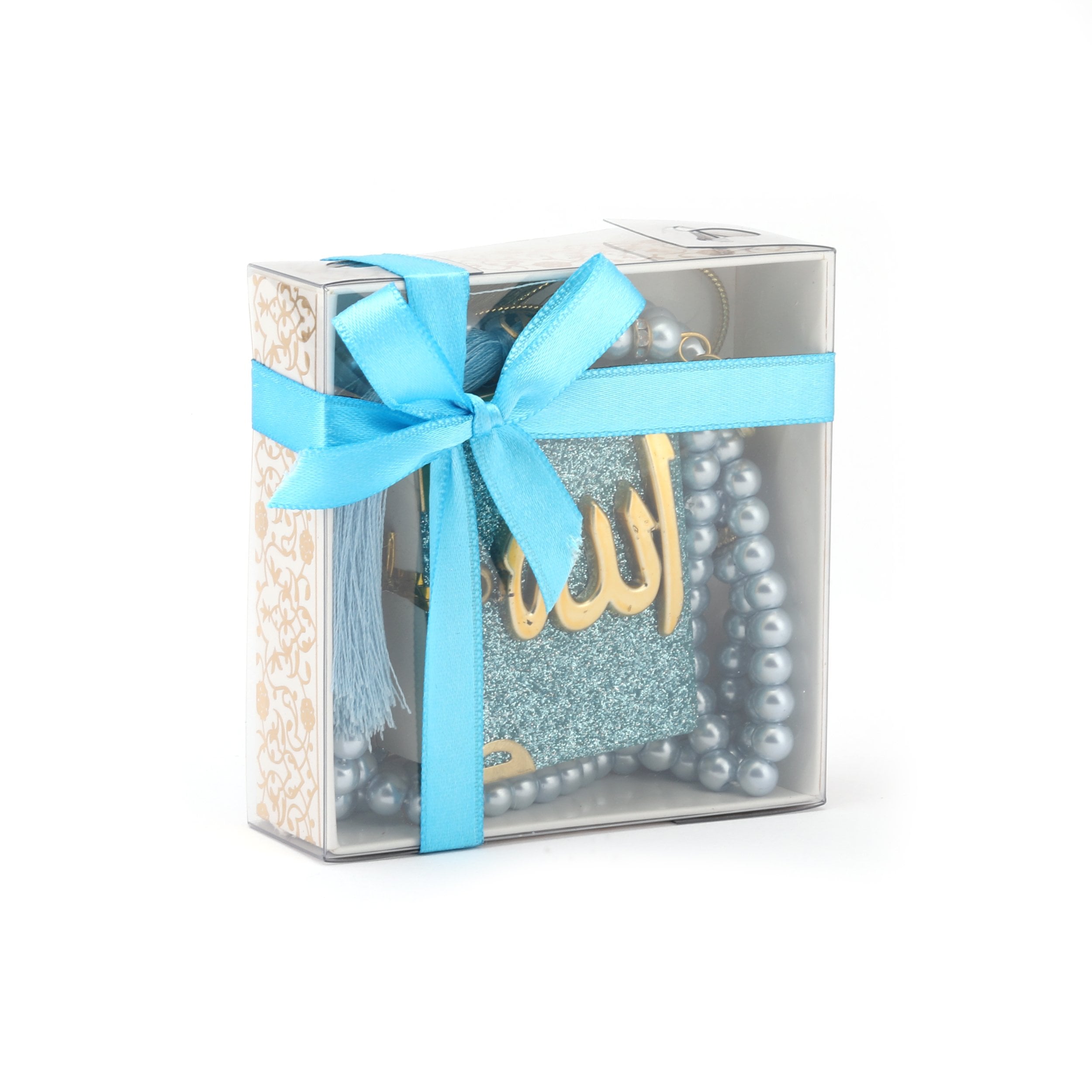 - Asetat kutu içerisinde kadife tam mini simli Kuran-ı Kerim otosüs ,99'luk 6 mm vavlı inci tesbih ile beraber sunulur.