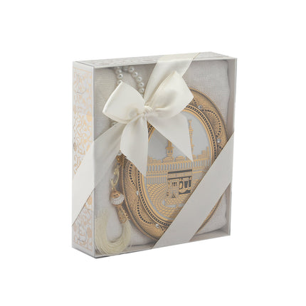 - Asetat kutu içerisinde 70x110 Cm Tafta Seccade, 99'luk 6 Mm Vavlı İnci Tesbih, 22x29 Cm Folyo Pano ile beraber sunulur.