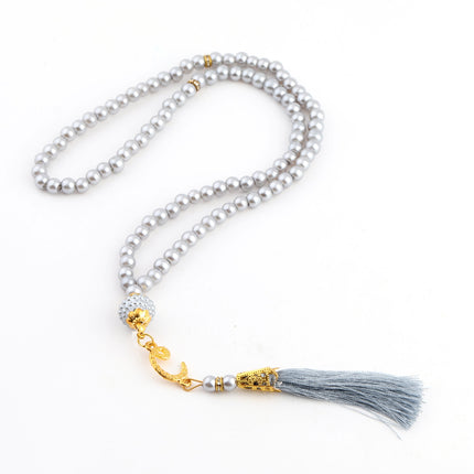 - Şeffaf huni içerisinde Taşlı Zikirmatik ve 99'luk 6 mm Vavlı İnci Tesbih ve Kadife Kaplı Mini Kuran-ı Kerim ile beraber sunulur.