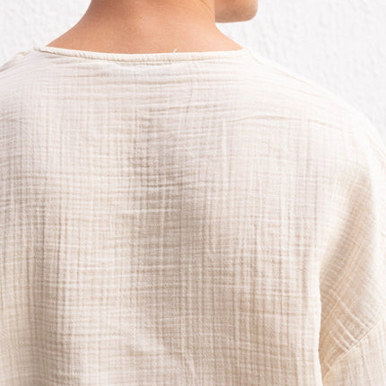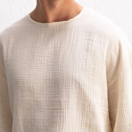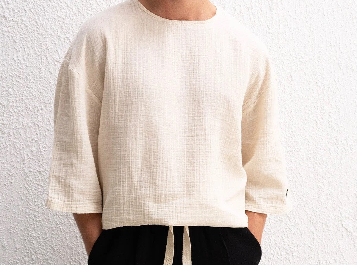 Yarım Kol Viskon Keten Tişört [BEJ]