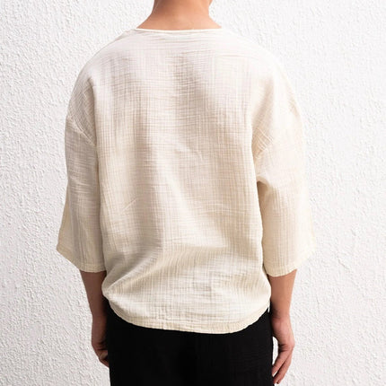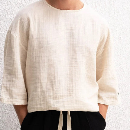 Yarım Kol Viskon Keten Tişört [Beyaz]: