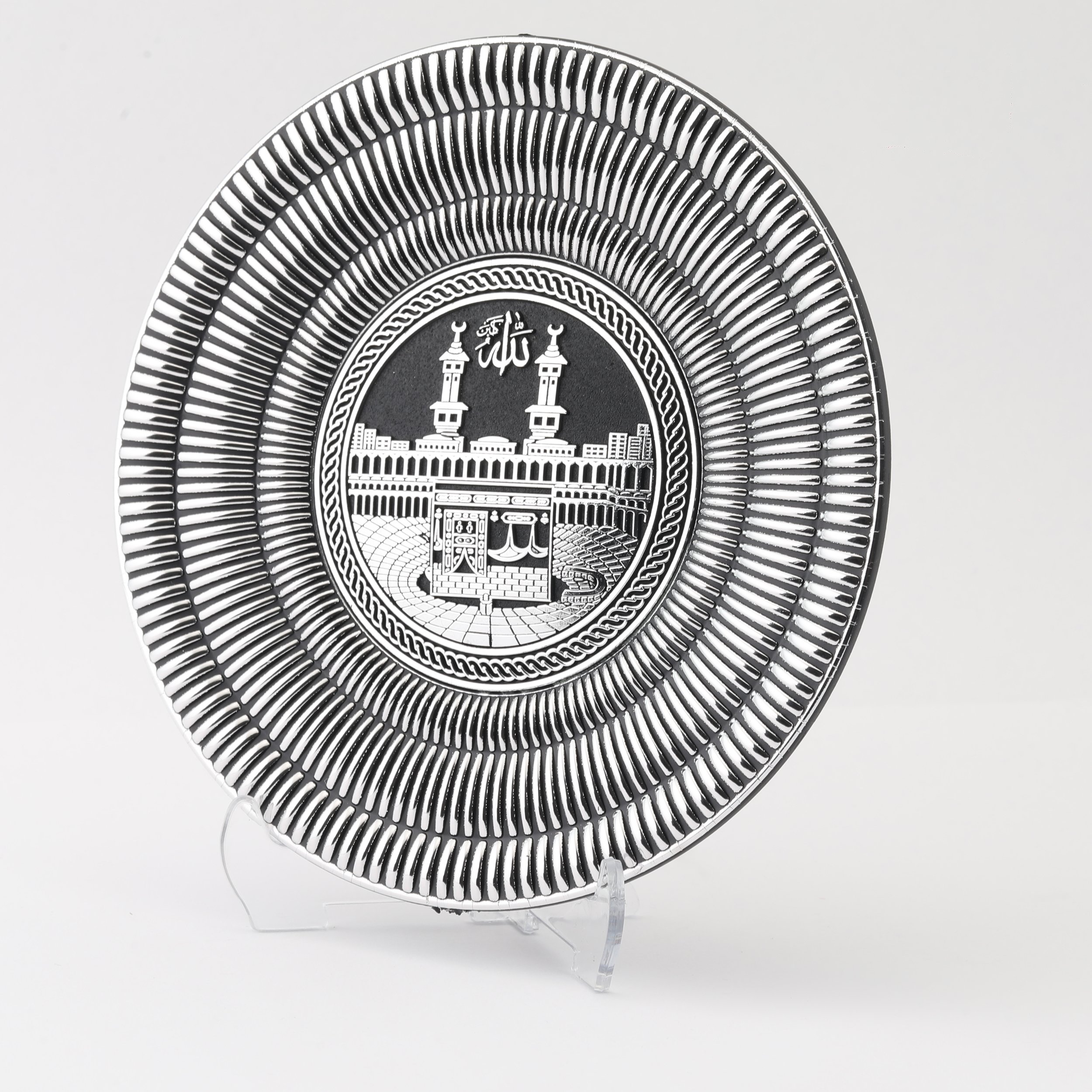 15 Cm Ayetli Kabe Tabak Gümüş-Siyah
