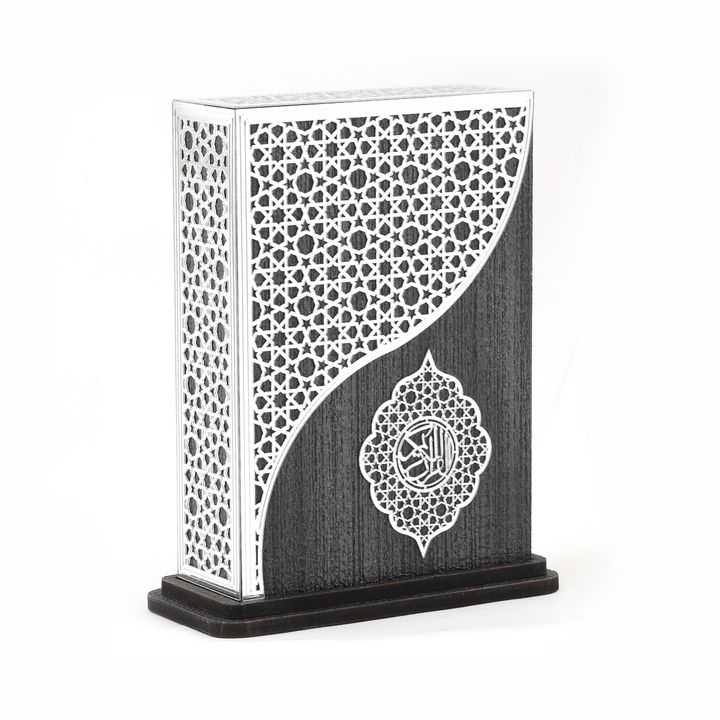 16x19 Cm Pleksili Kurtuba Dikey Çanta Boy Kuran-ı Kerim Kutusu Gümüş-Siyah