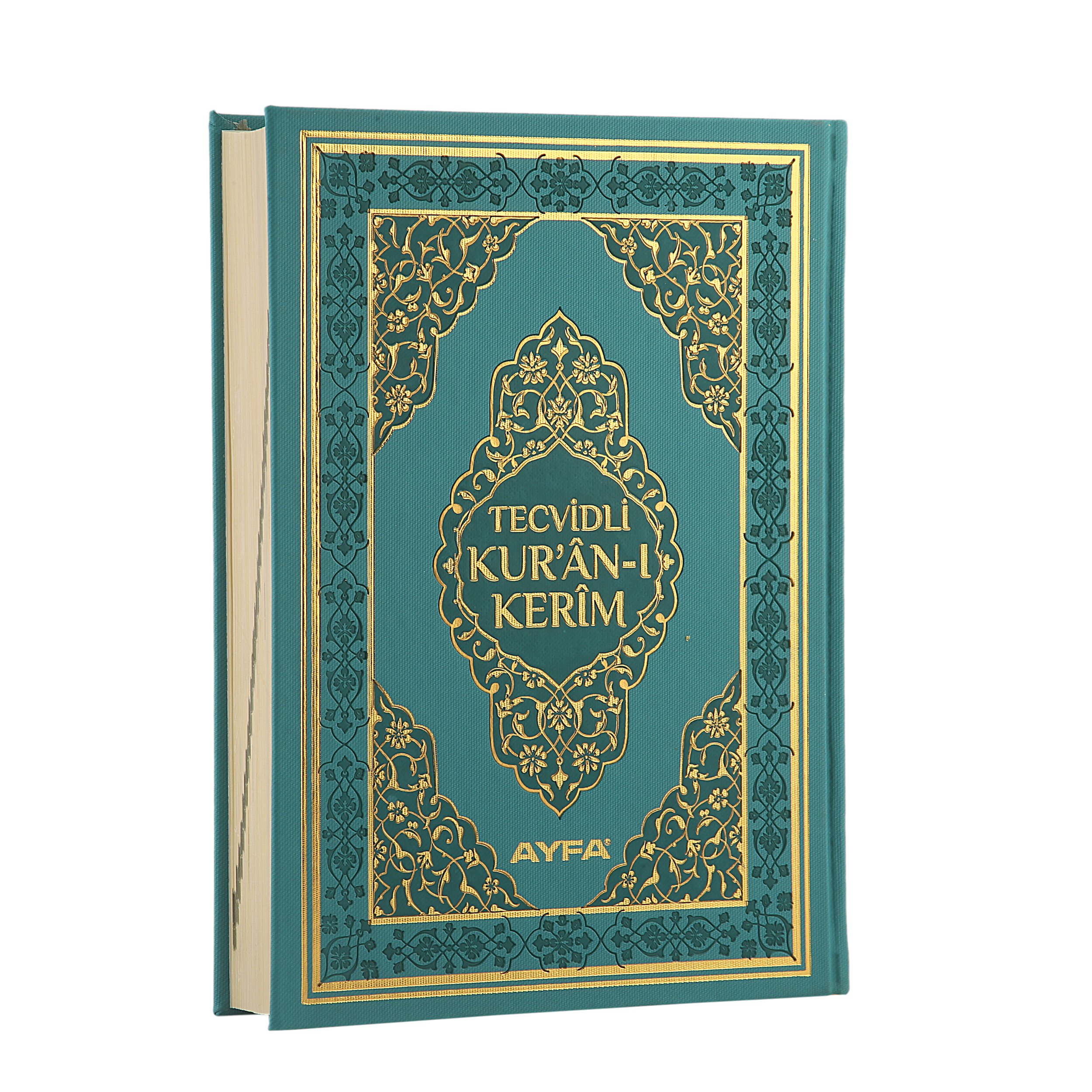 17x25 Cm Orta Boy Tecvidli Termo Deri Kuran-ı Kerim Turkuaz