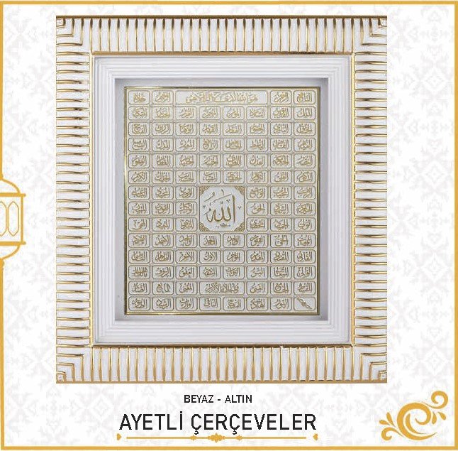 18x20 Cm Esmaül Hüsna Pano Beyaz-Gold