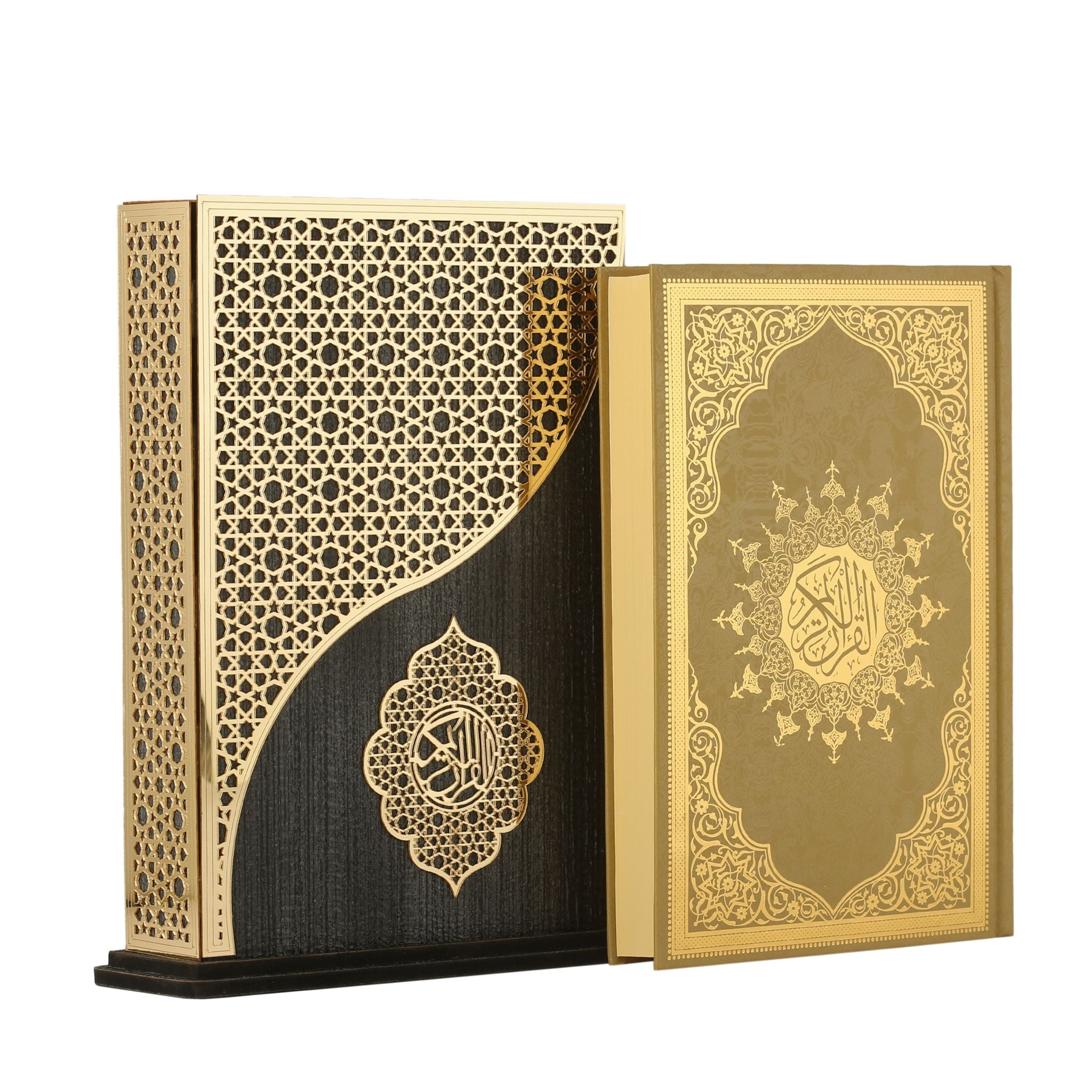 - Kurtuba güneş gold pleksili kutu içerisinde 17x25 Cm Orta Boy Medine Hatlı Kuran-ı Kerim ile beraber sunulur.