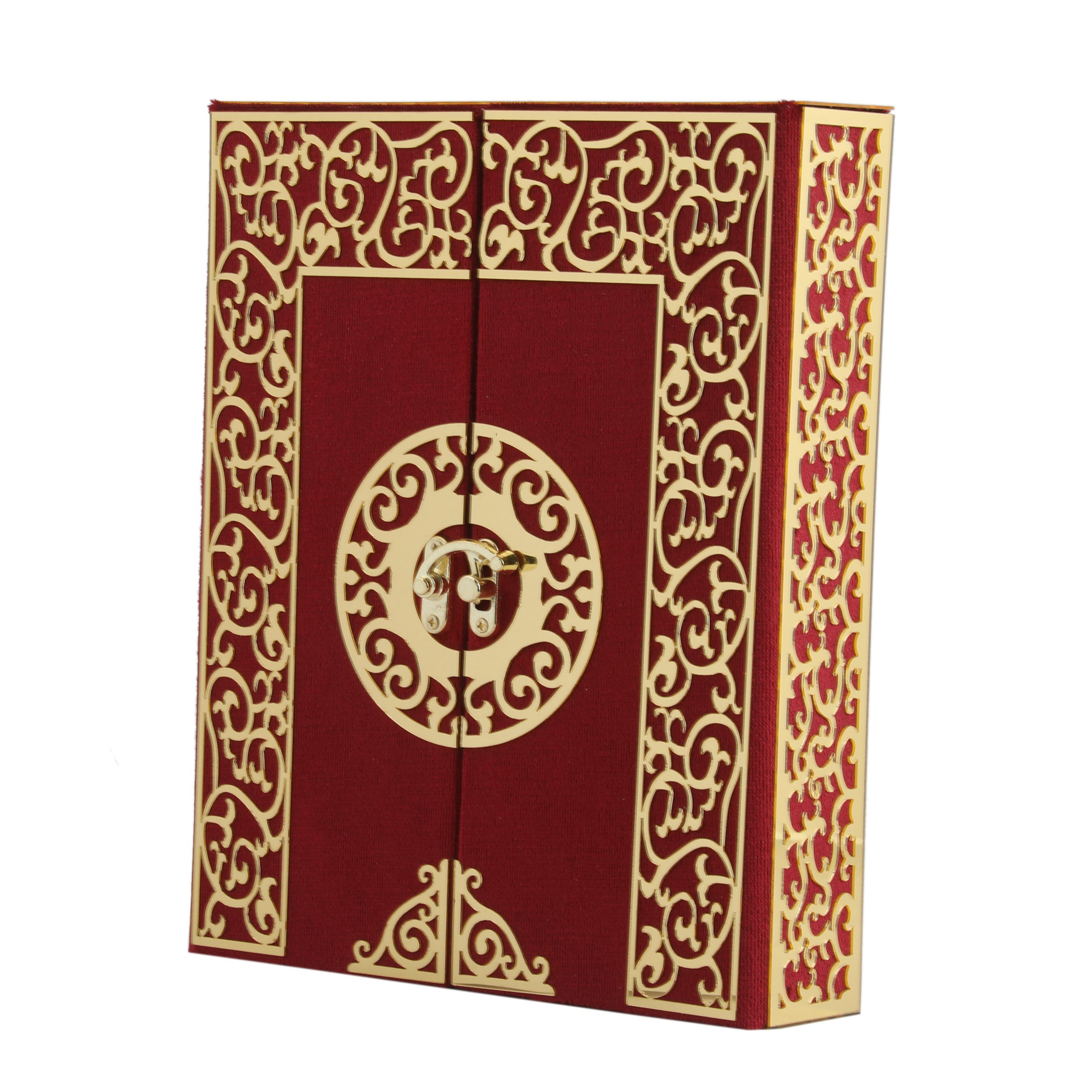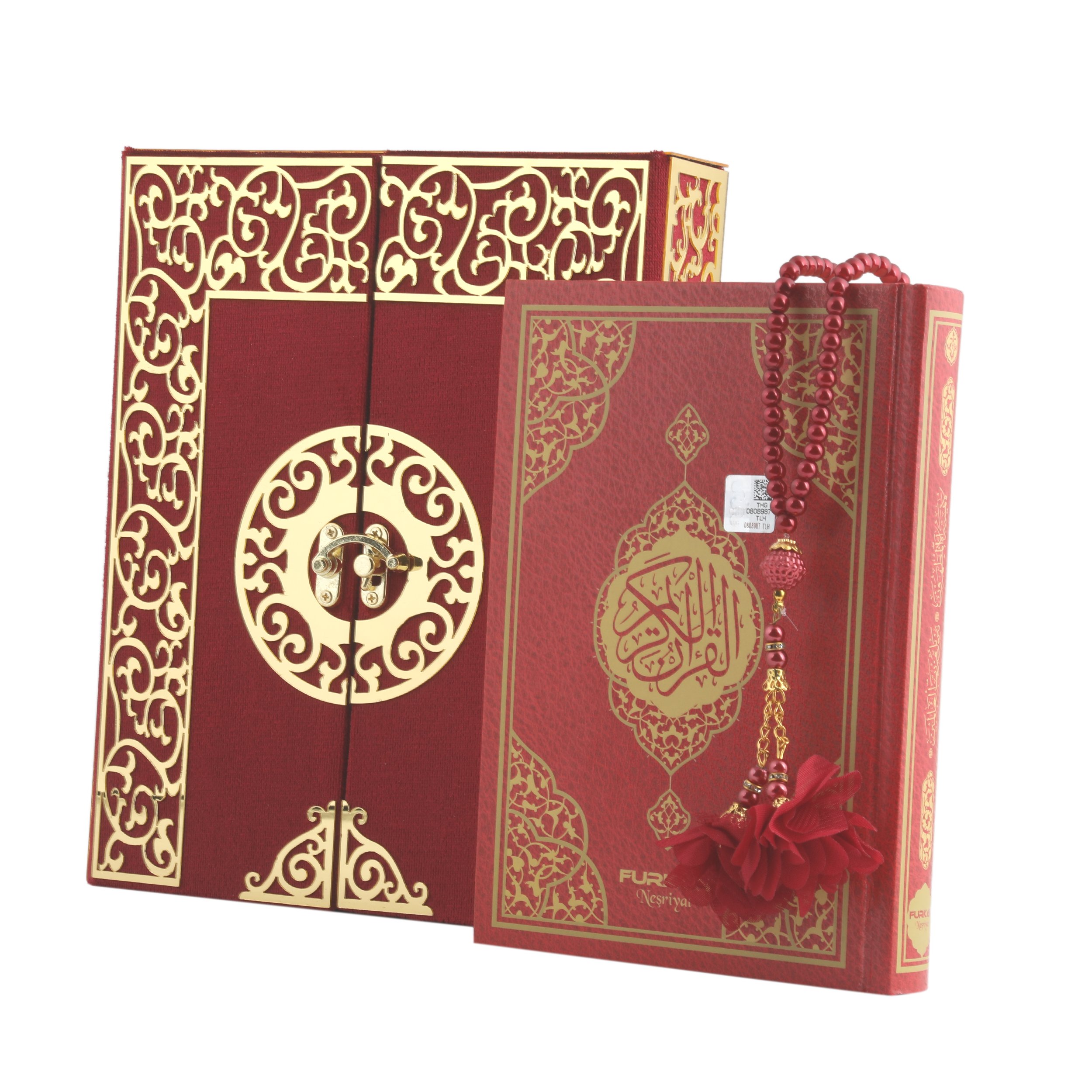 20x24 Cm İki Kapılı Dikey Kuran-ı Kerim Tesbih Kutusu Bordo