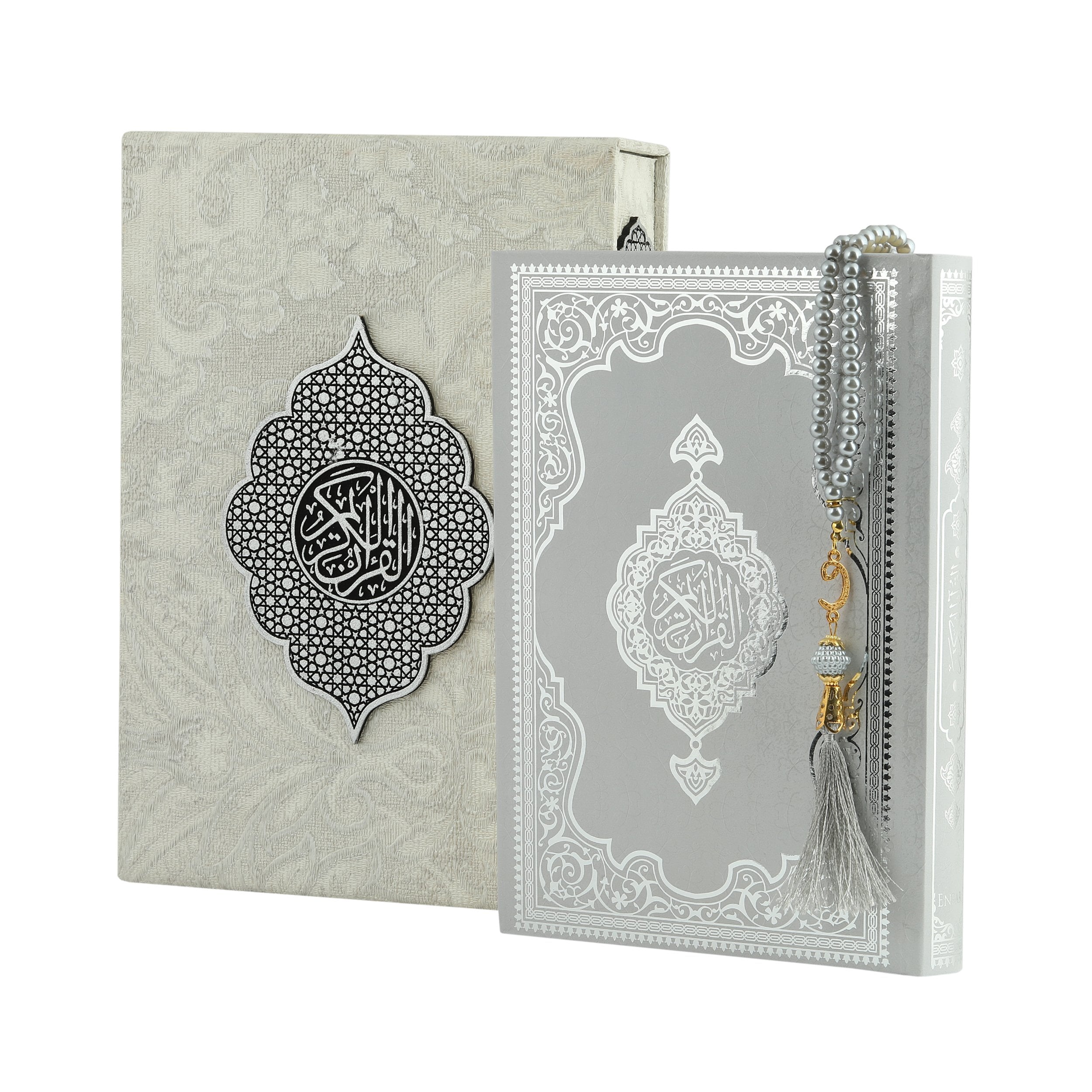 - Antik taşlama plaket kutu içerisinde 17x25 Cm Orta Boy Medine Hatlı Kuran-ı Kerim ve 99'lu 6 mm Vavlı İnci Tesbih ile beraber sunulur.