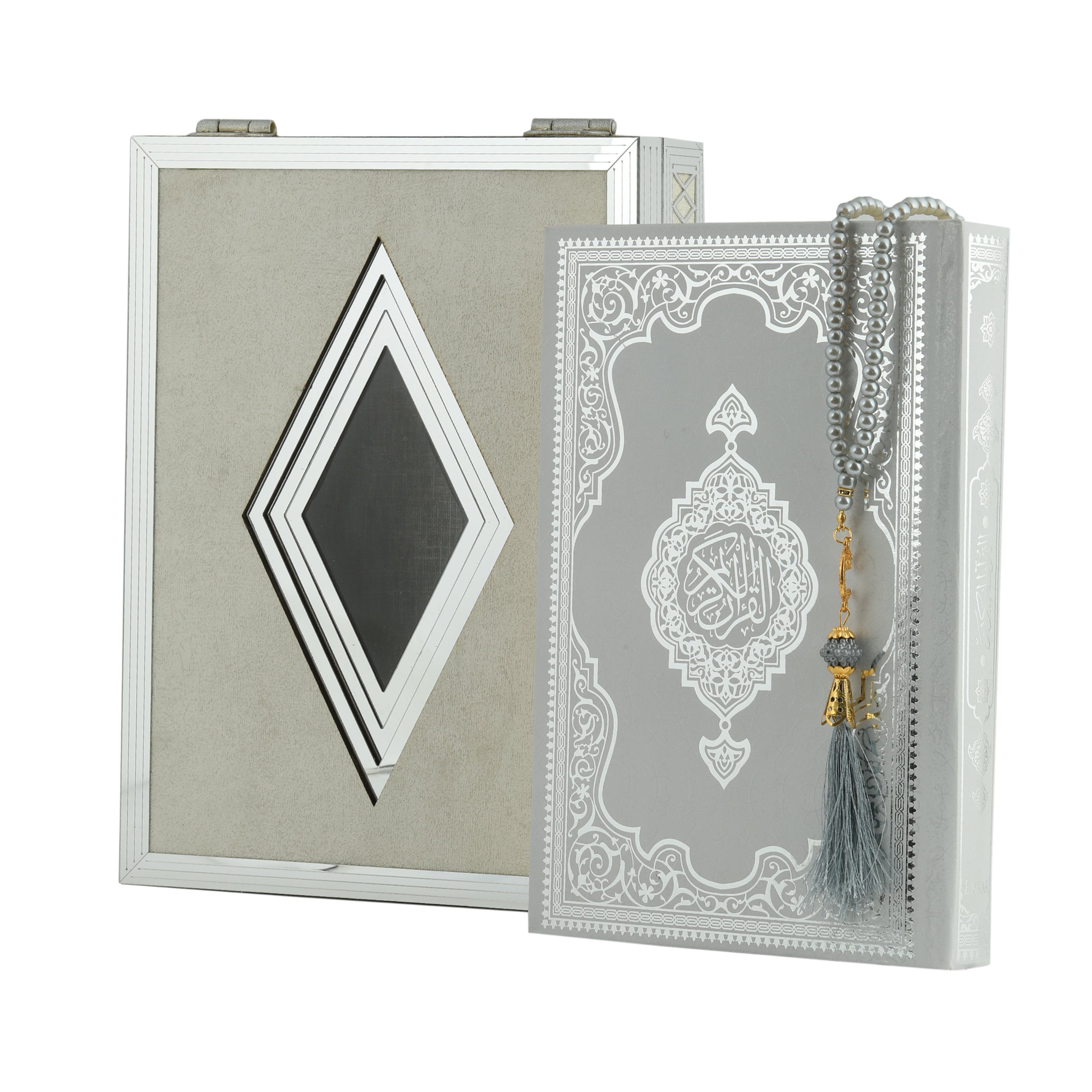 20x29x6 Cm Prizma Plaket Kuran-ı Kerim Tesbih Kutusu Gri