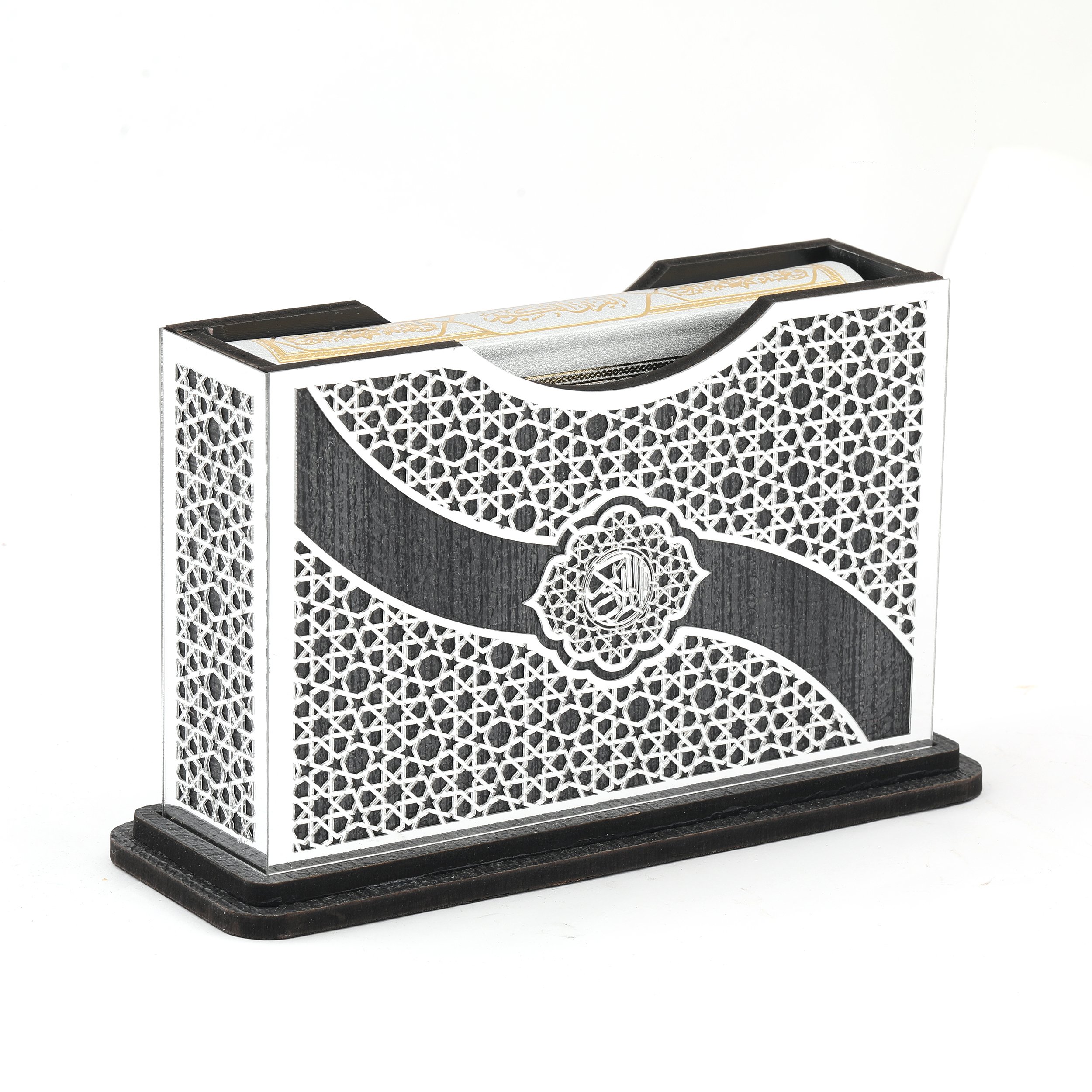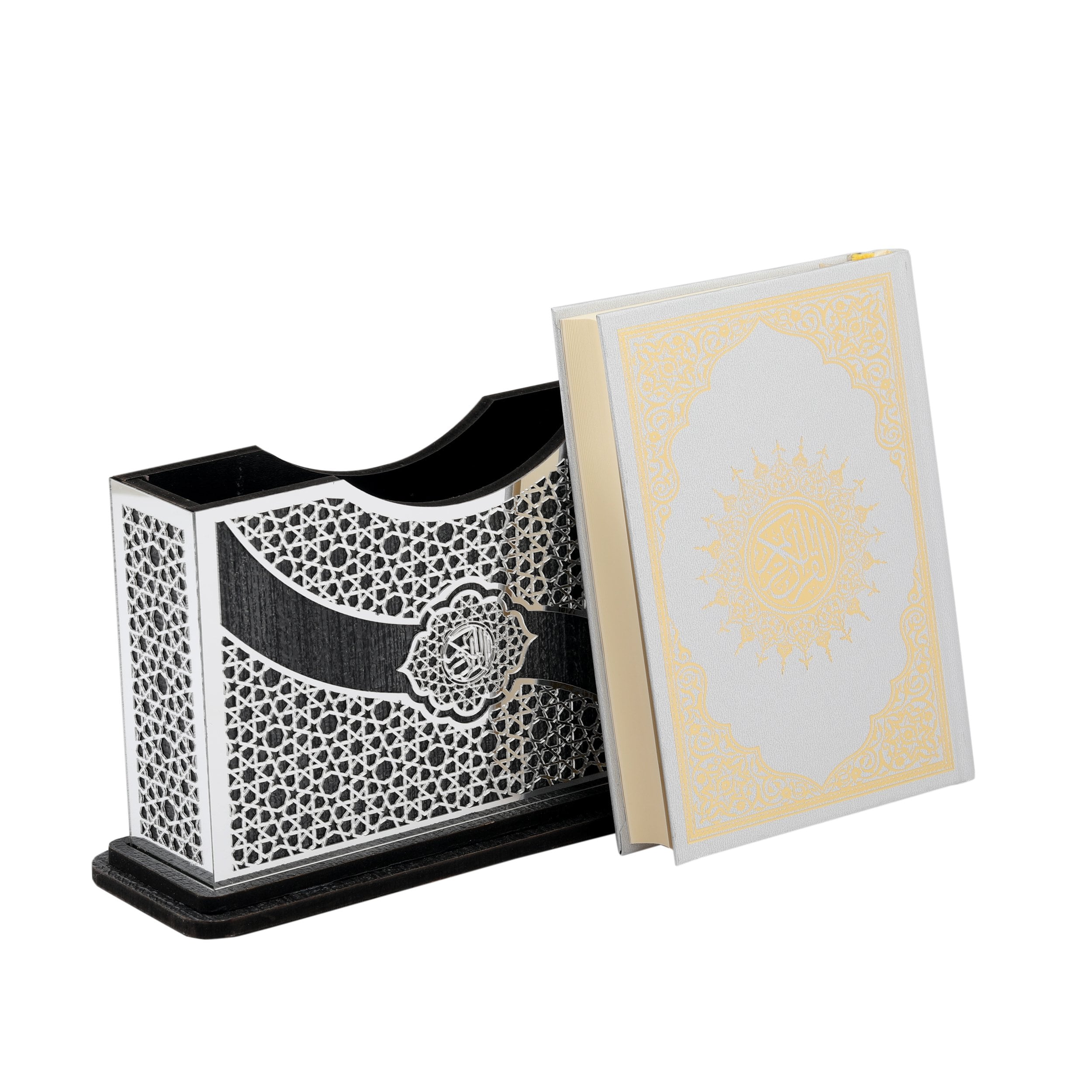 21x13 Cm Kurtuba Pleksili Yatay Çanta Boy Kuran-ı Kerim Kutusu Gümüş-Siyah