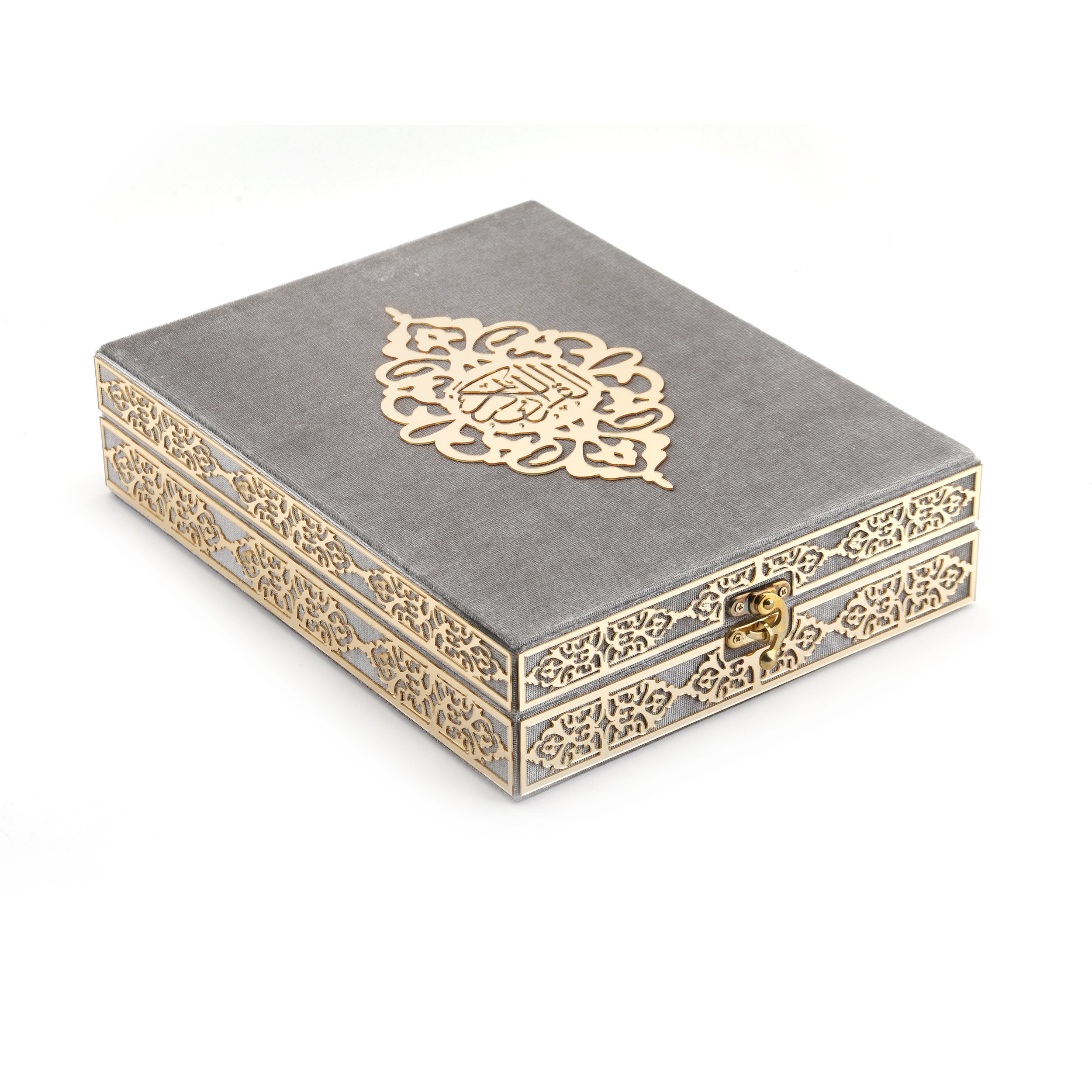 21x27 Cm Kadife Kaplı Plaket Kuran-ı Kerim Tesbih Kutusu Gri