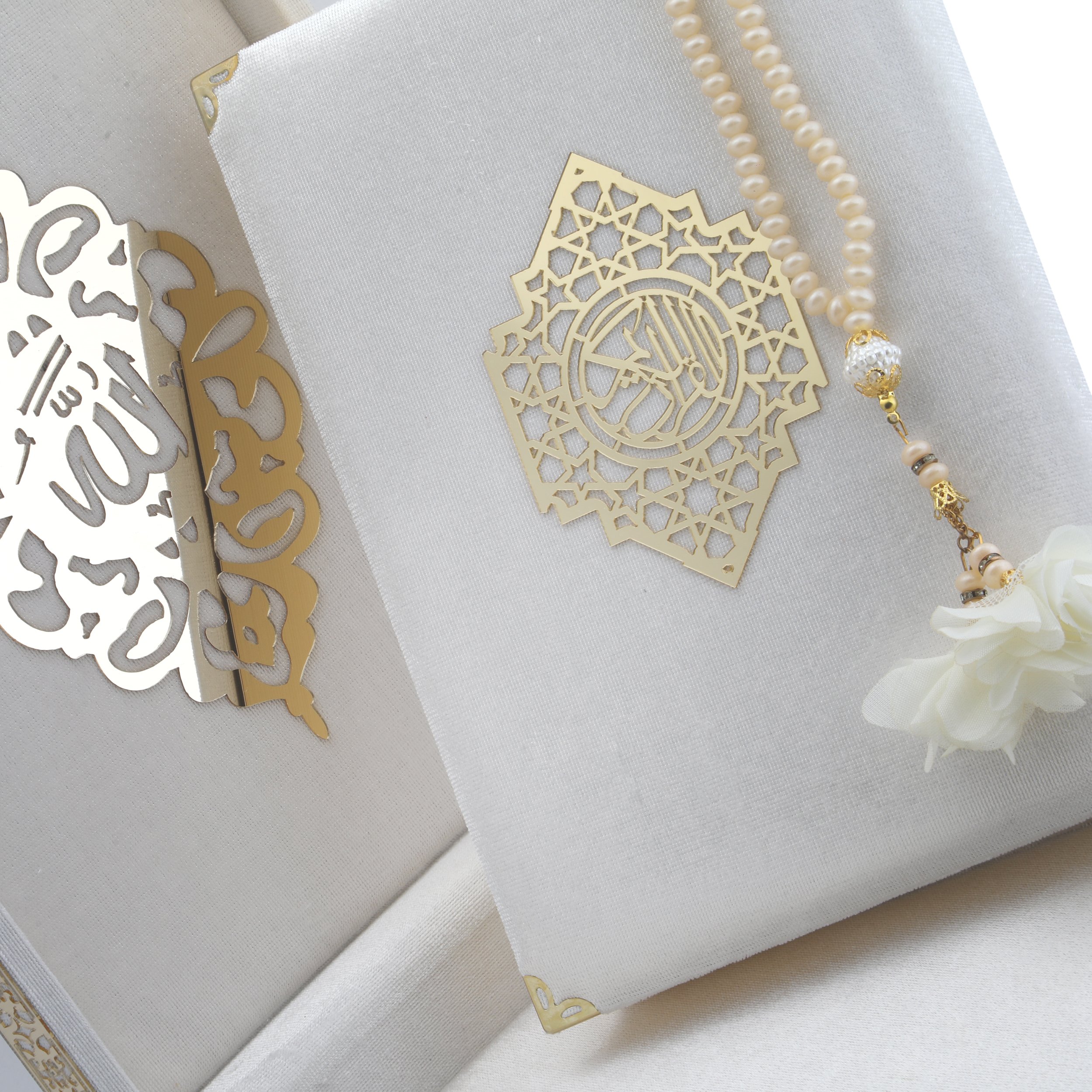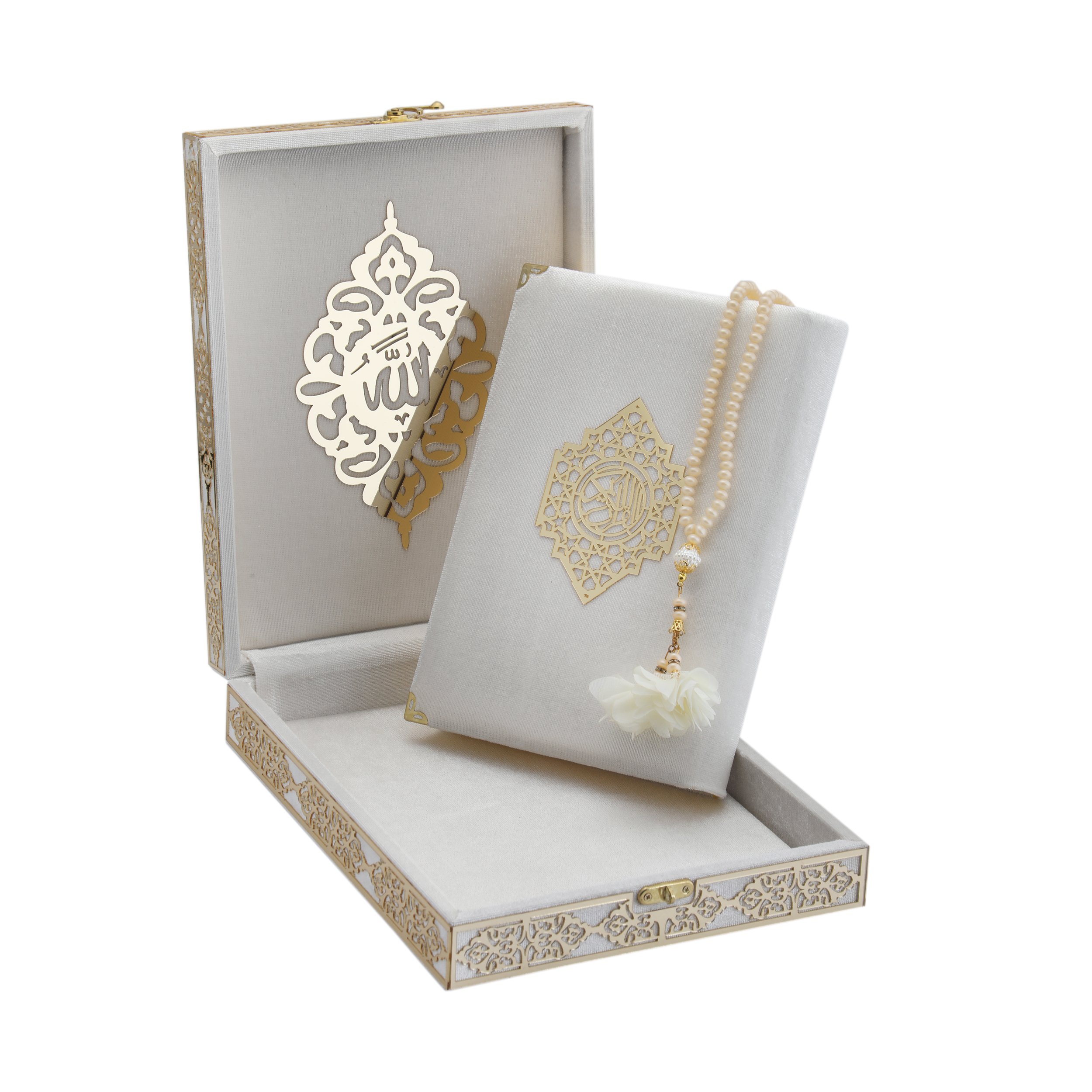 21x27 Cm Kadife Kaplı Plaket Kuran-ı Kerim Tesbih Kutusu Krem