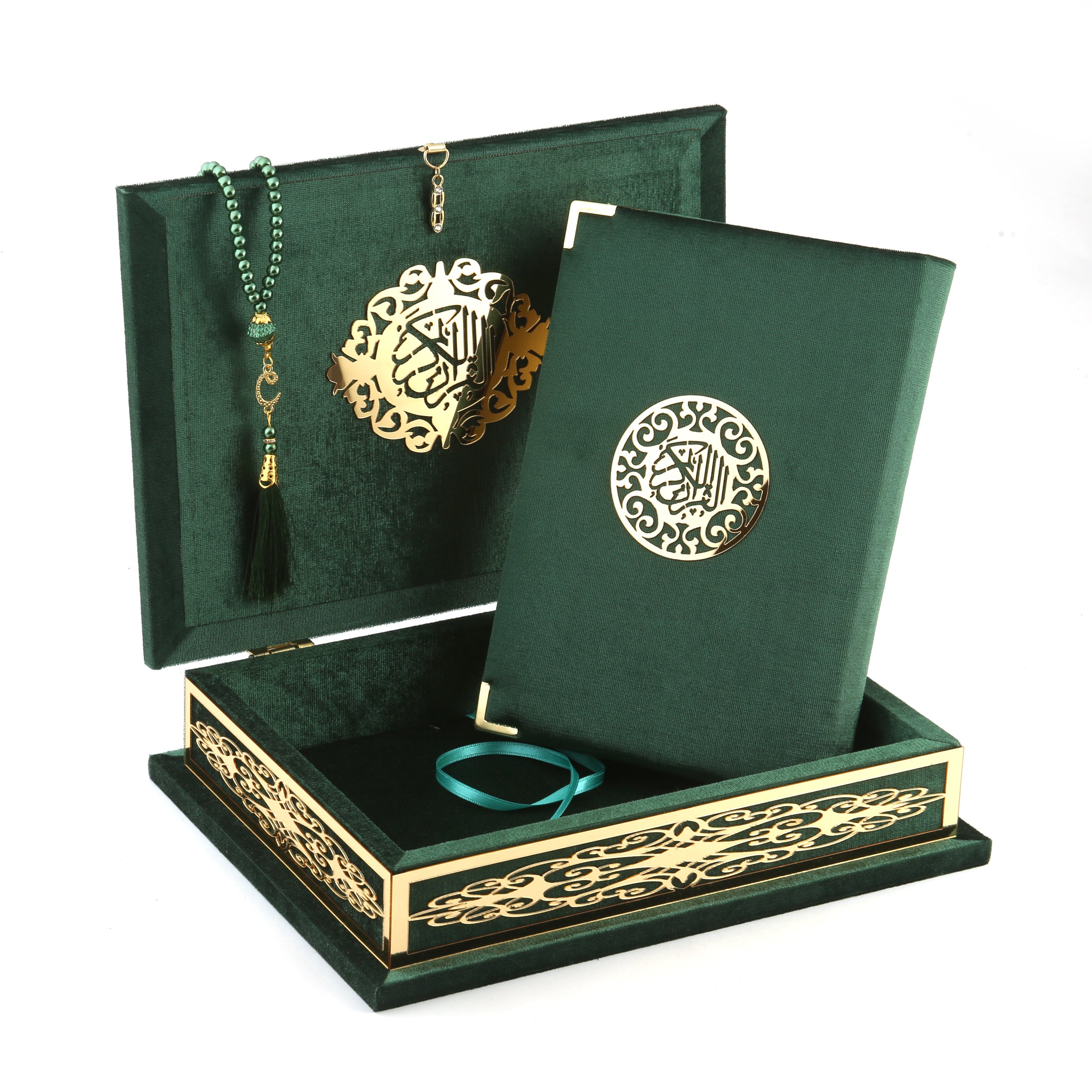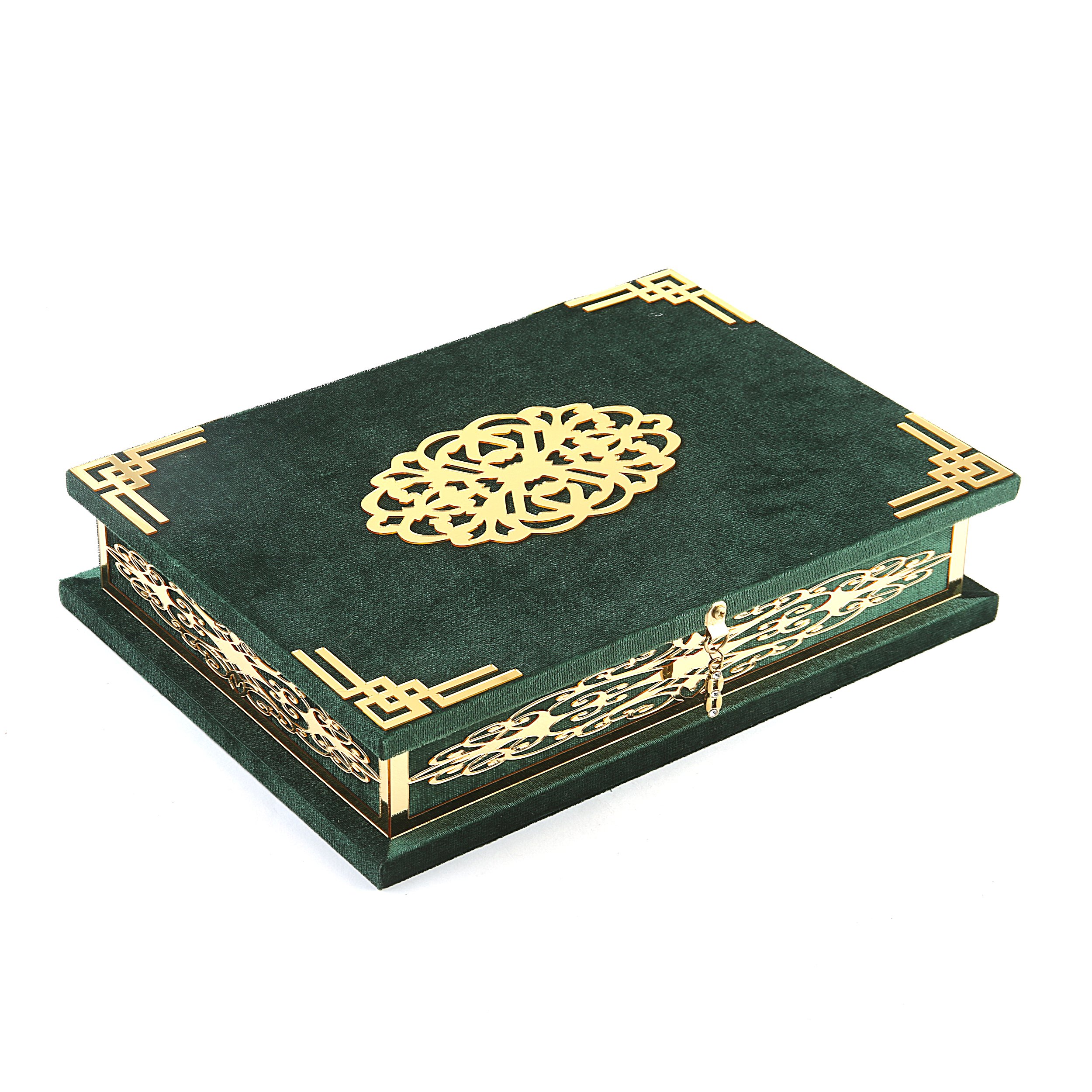 21x30 Cm Pleksili Kadife Kaplı Kuran-ı Kerim Kutusu Yeşil
