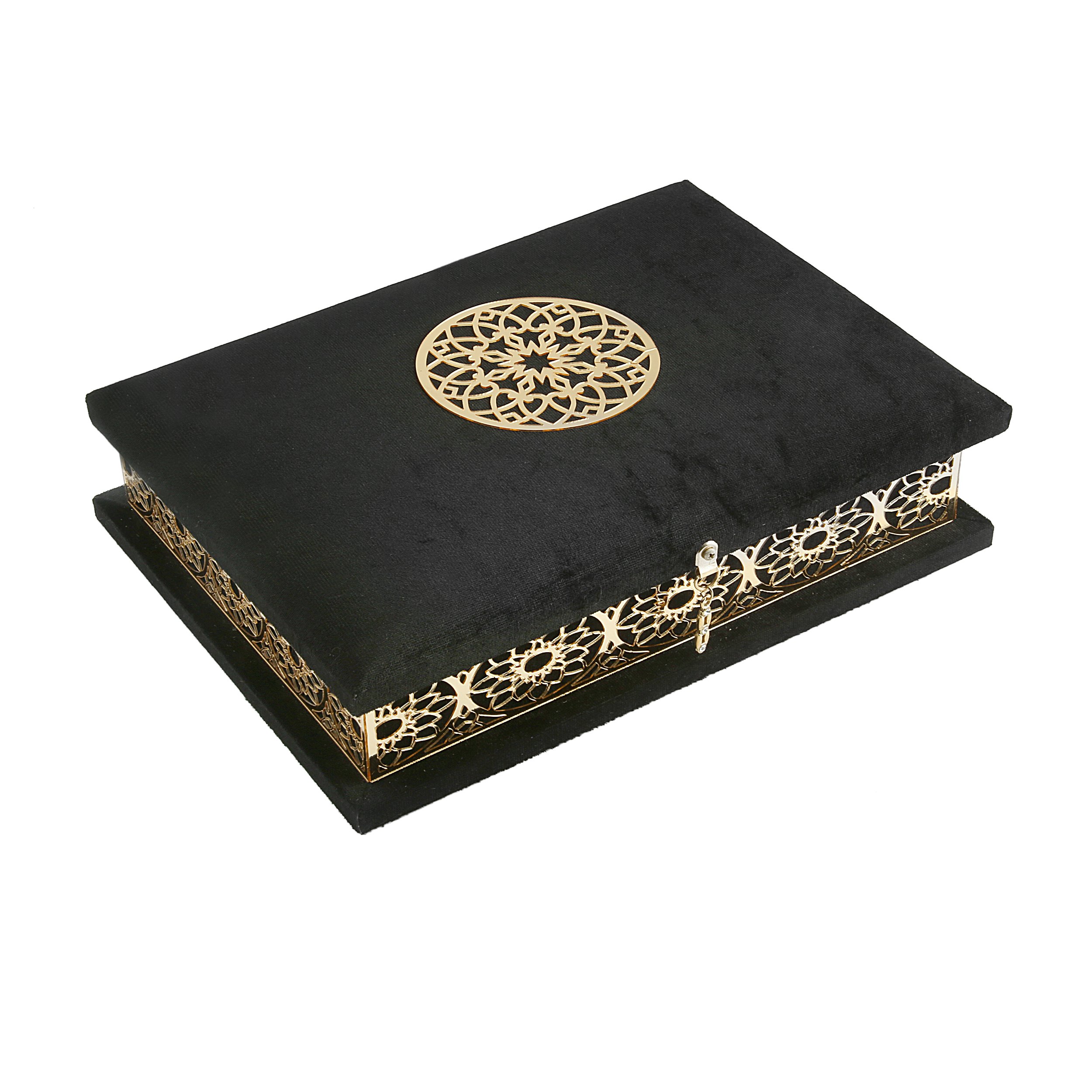 23x31 Cm Pleksili Kadife Kaplı Kuran-ı Kerim Kutusu Siyah