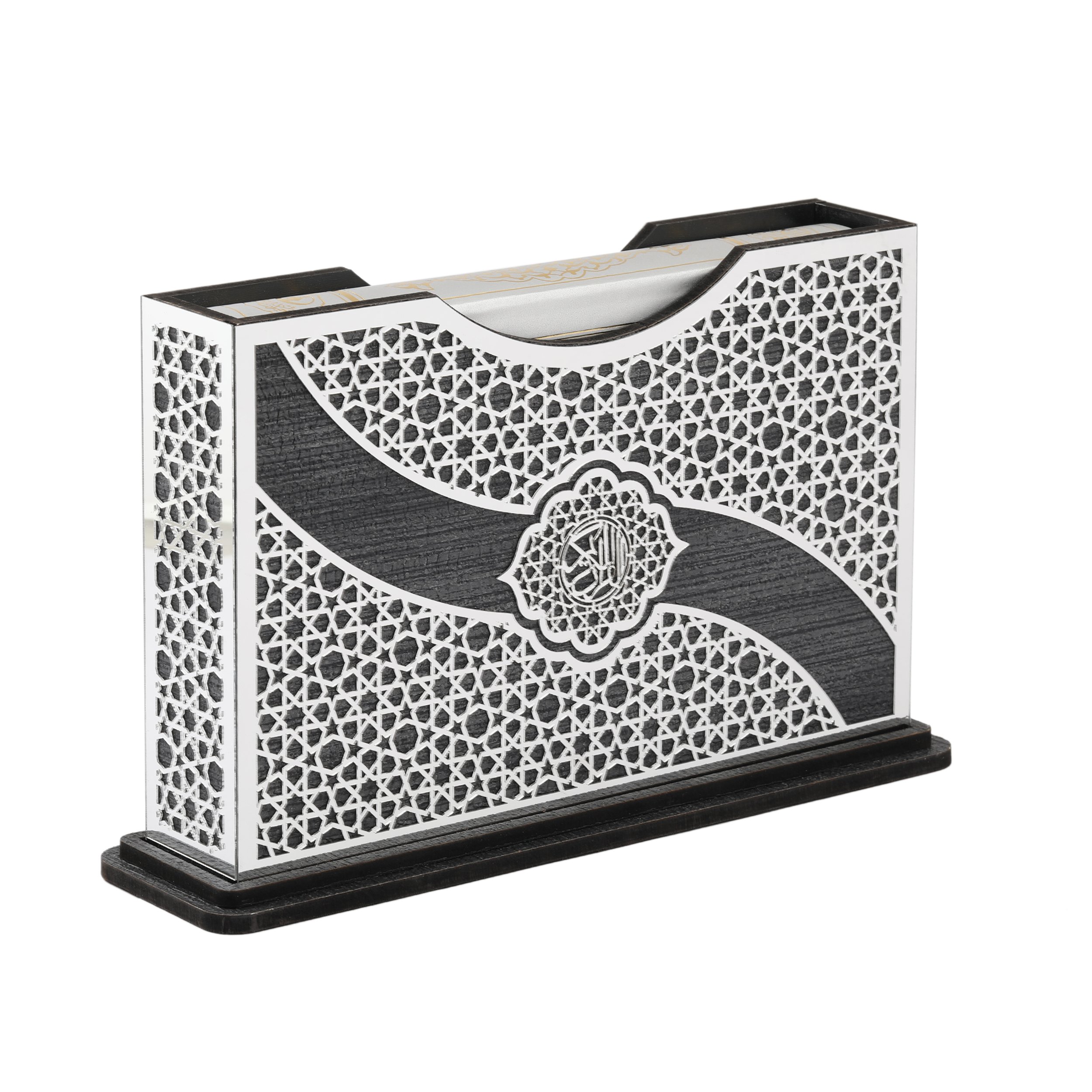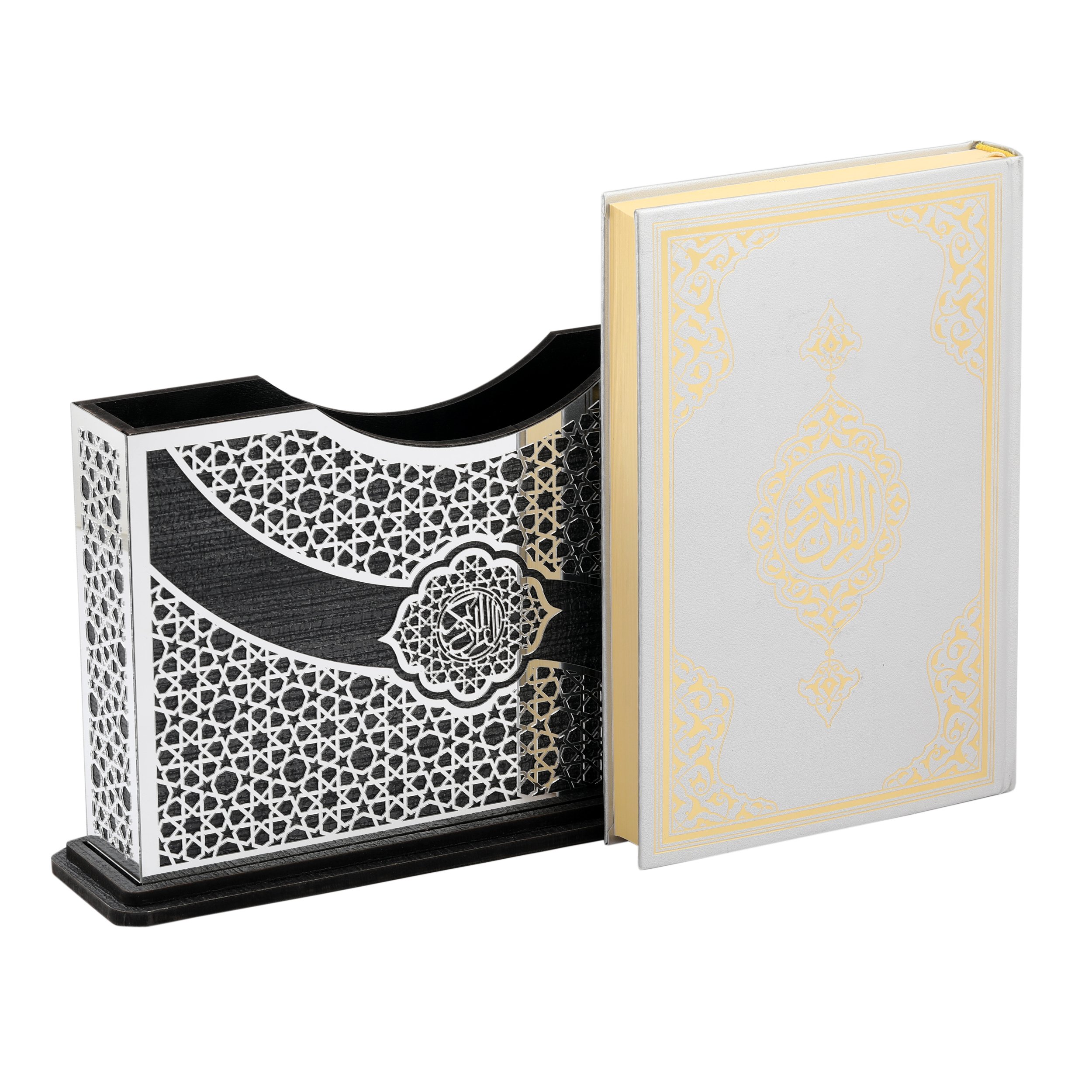 29x18 Cm Kurtuba Pleksili Yatay Orta Boy Kuran-ı Kerim Kutusu Gümüş-Siyah