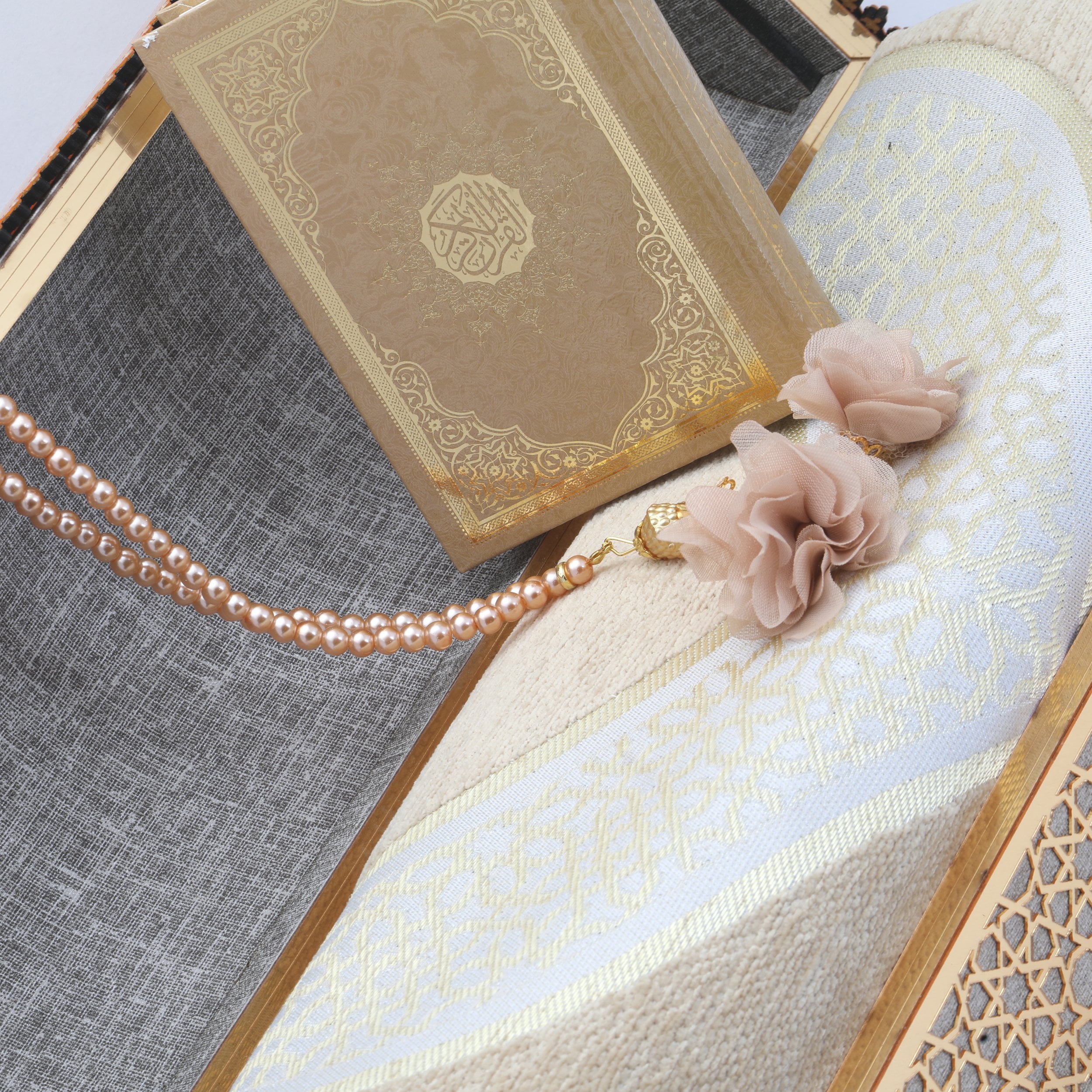 37x15x16 Cm Hediyelik Seccade Kuran-ı Kerim Tesbih Sandık Set Gold