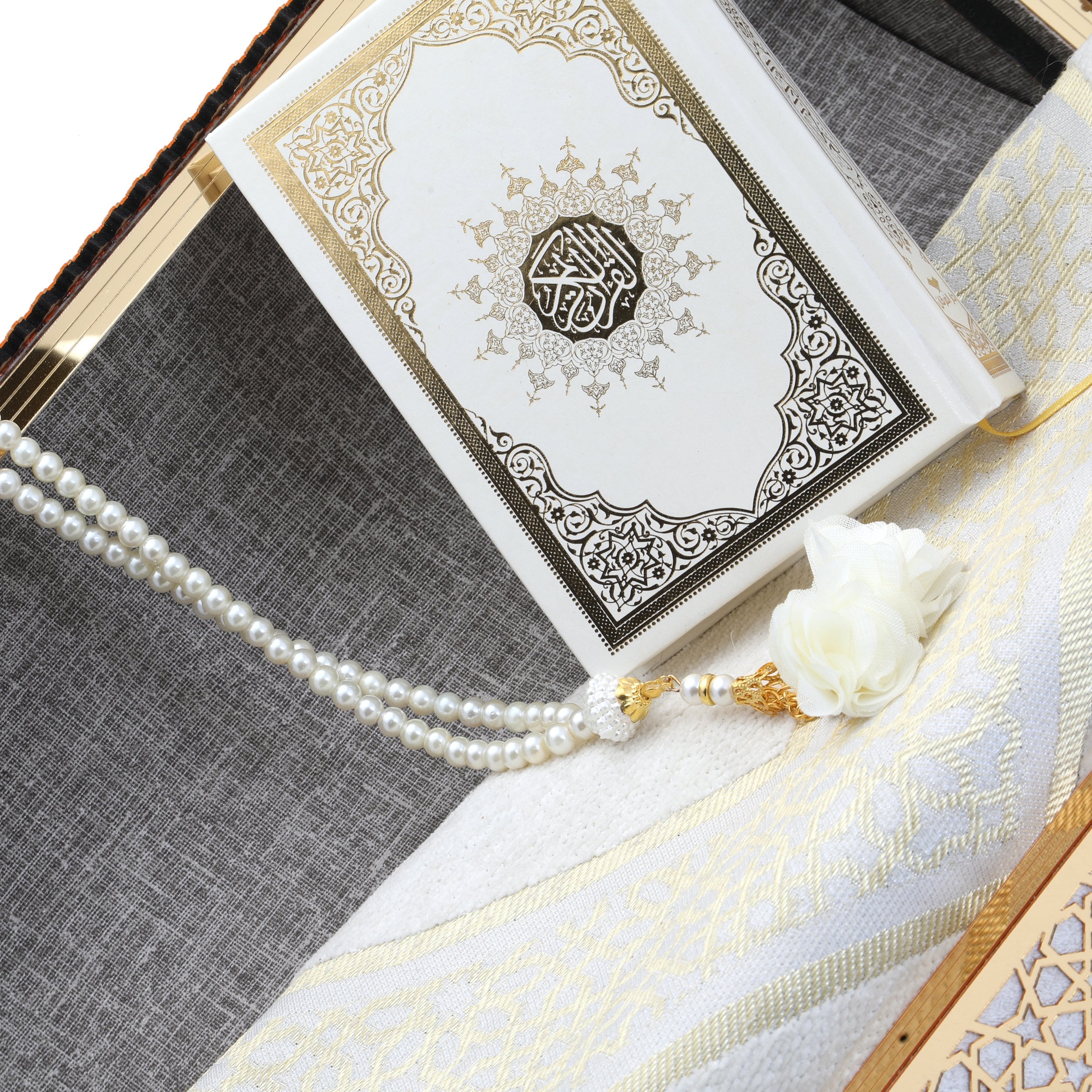 37x15x16 Cm Hediyelik Seccade Kuran-ı Kerim Tesbih Sandık Set Krem