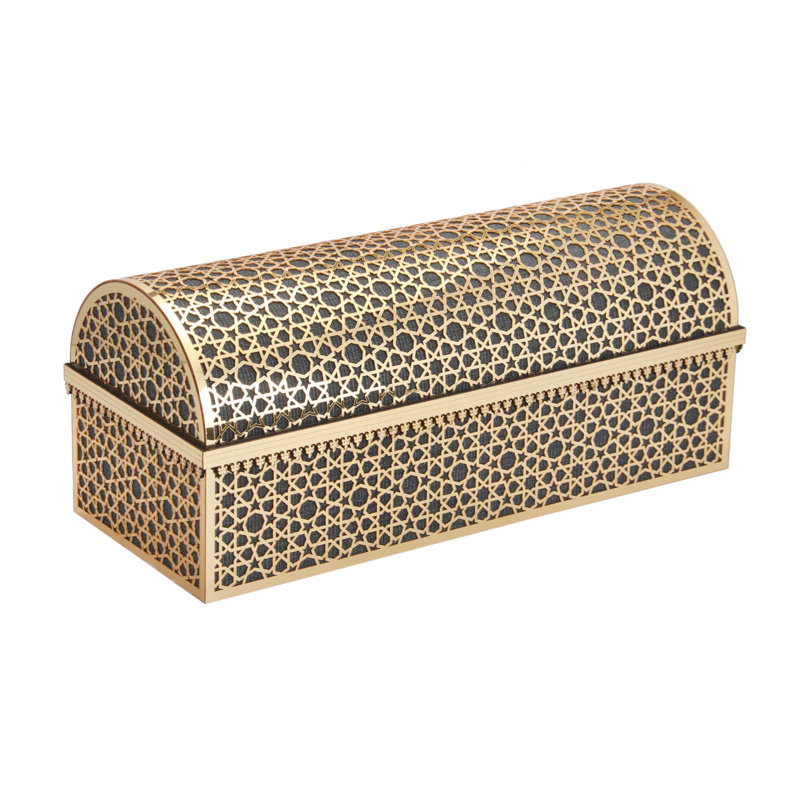 - Ahşap sandık içerisinde 70x120 Cm Astarlı Patchwork Seccade 750 Gr, 10x14 Cm Büyük Cep Boy Medine Hatlı Ofset Kuran-ı Kerim ve 99'luk 6 mm İki Tül Güllü Tesbih ile beraber sunulur.