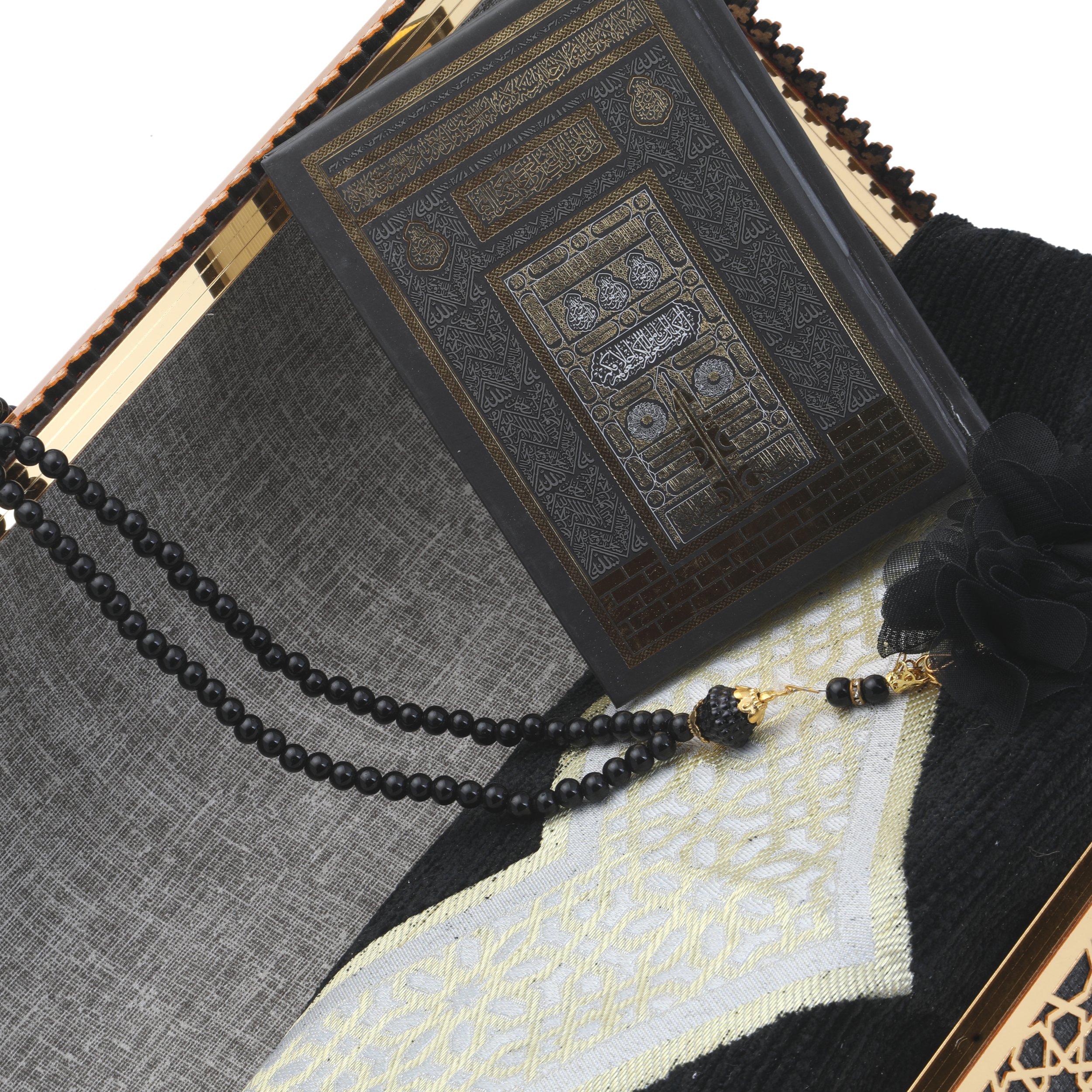 37x15x16 Cm Hediyelik Seccade Kuran-ı Kerim Tesbih Sandık Set Siyah