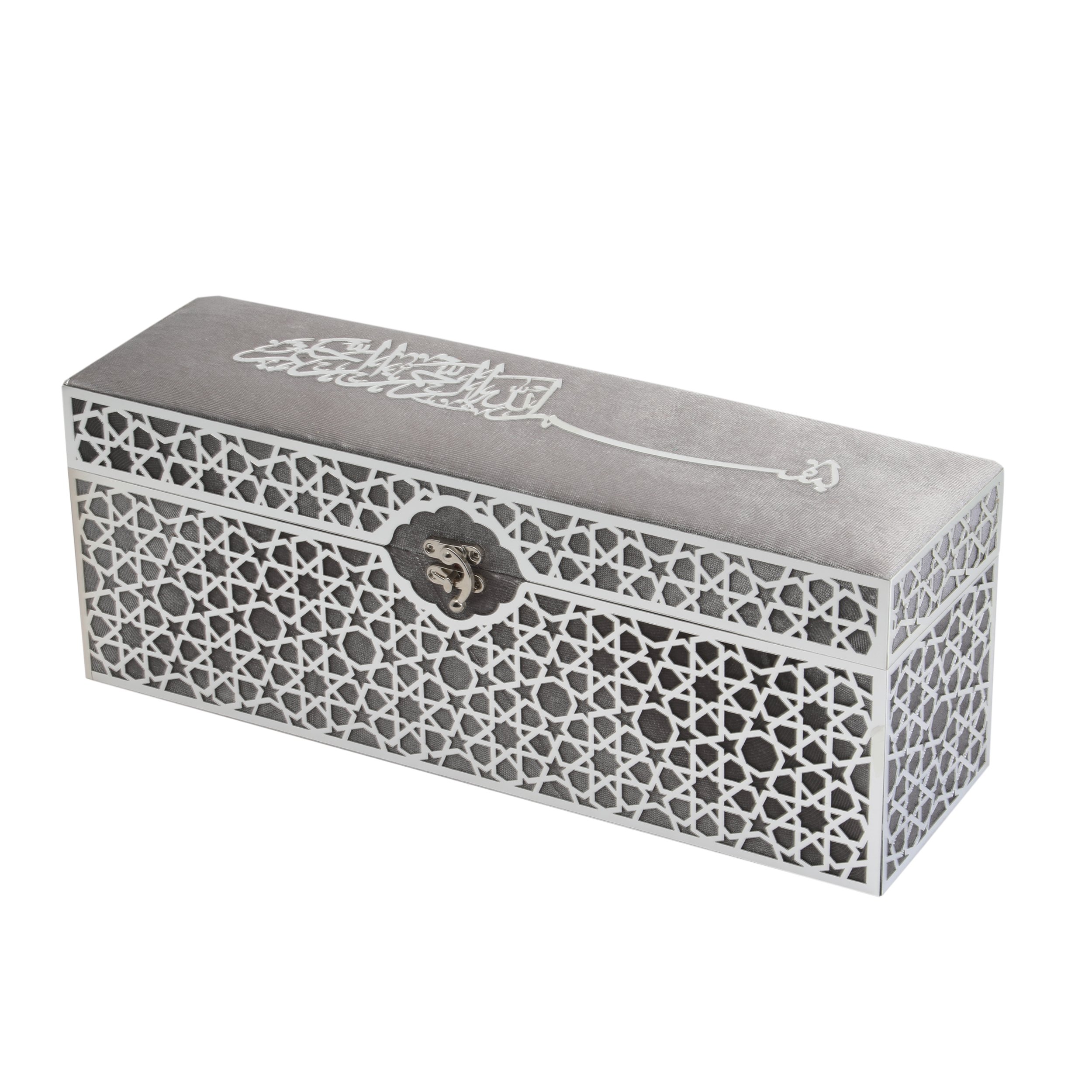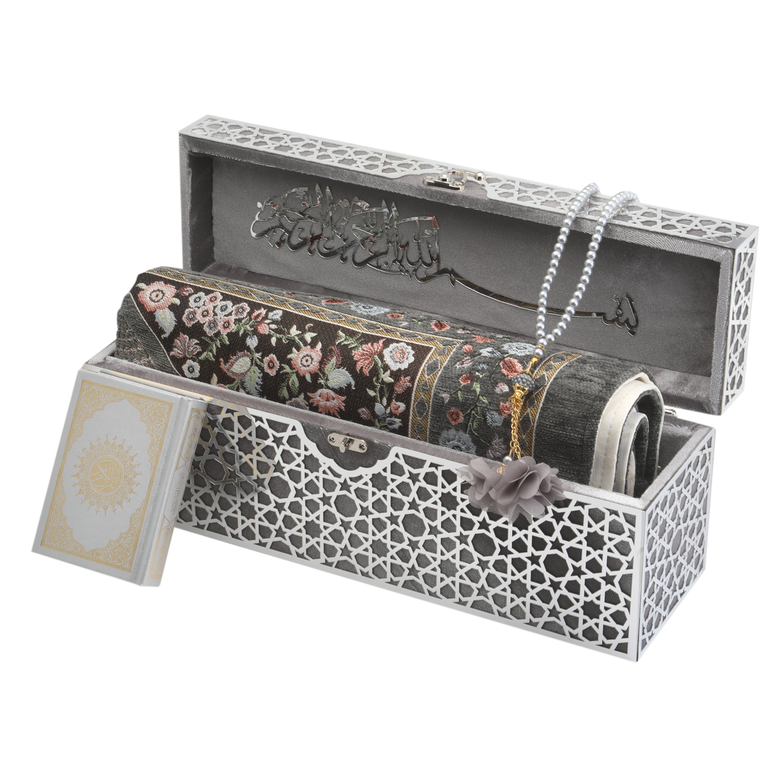 38x11x15 Cm Kadife Kaplı Seccade Kuran-ı Kerim Tesbih Kutusu Gri