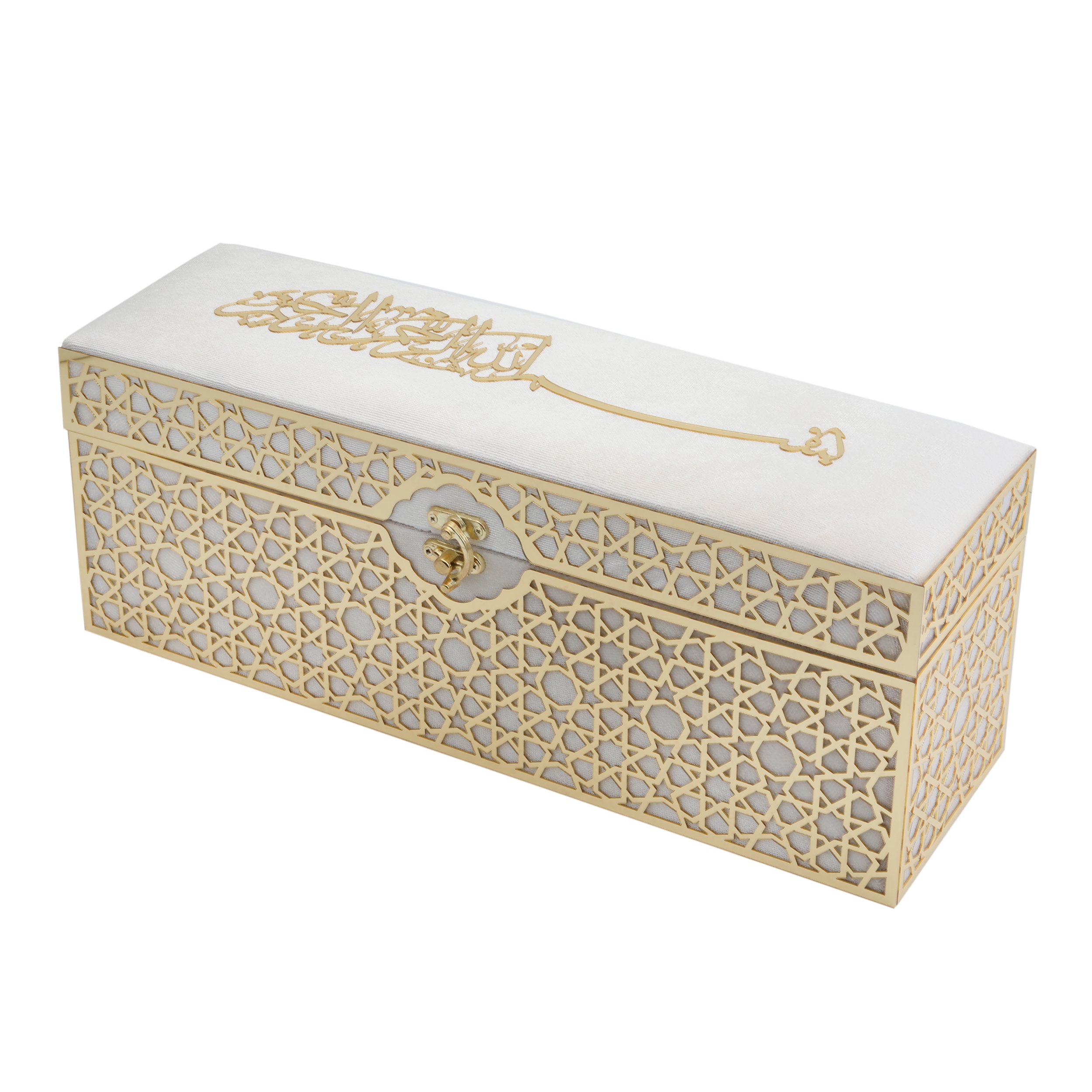 38x11x15 Cm Kadife Kaplı Seccade Kuran-ı Kerim Tesbih Kutusu Krem