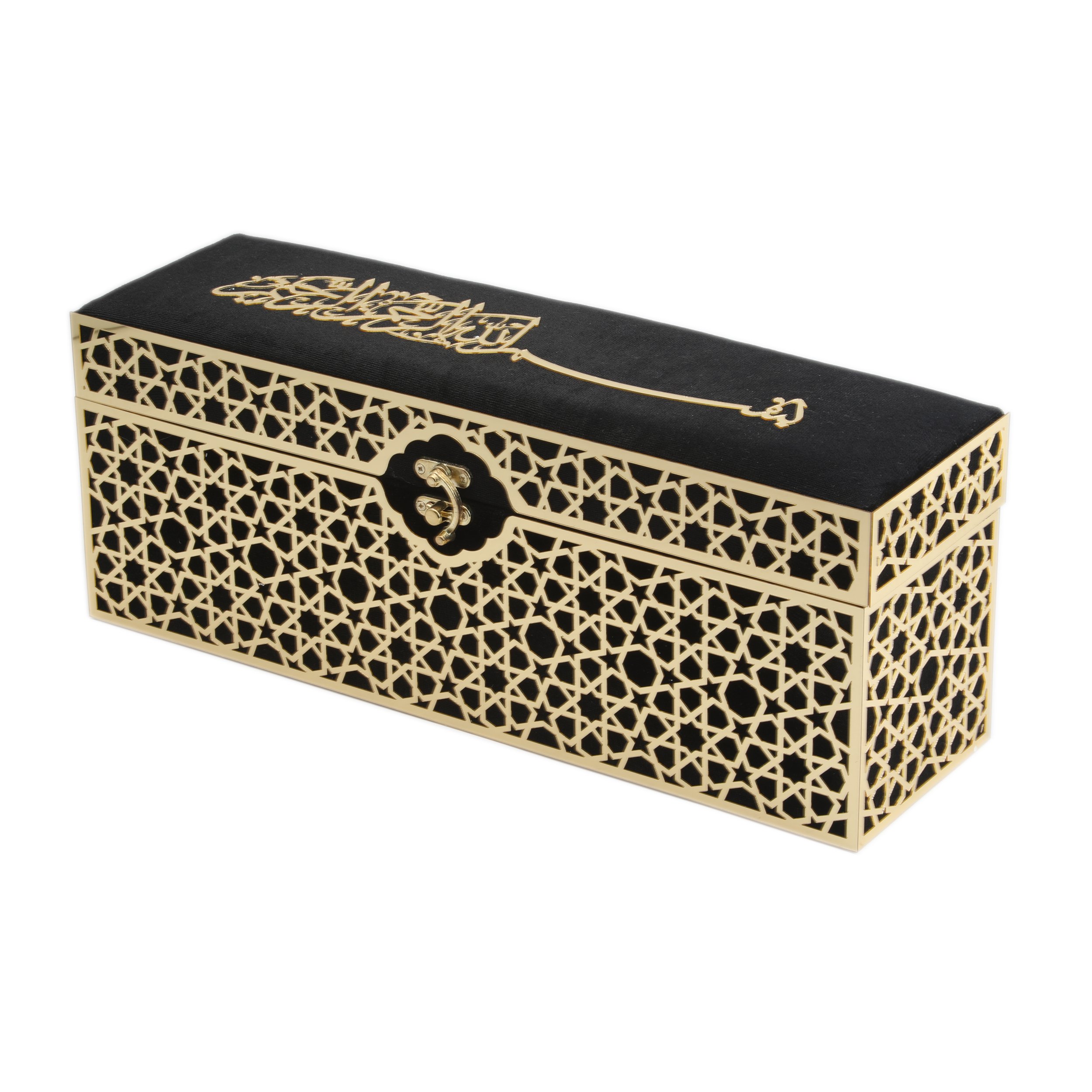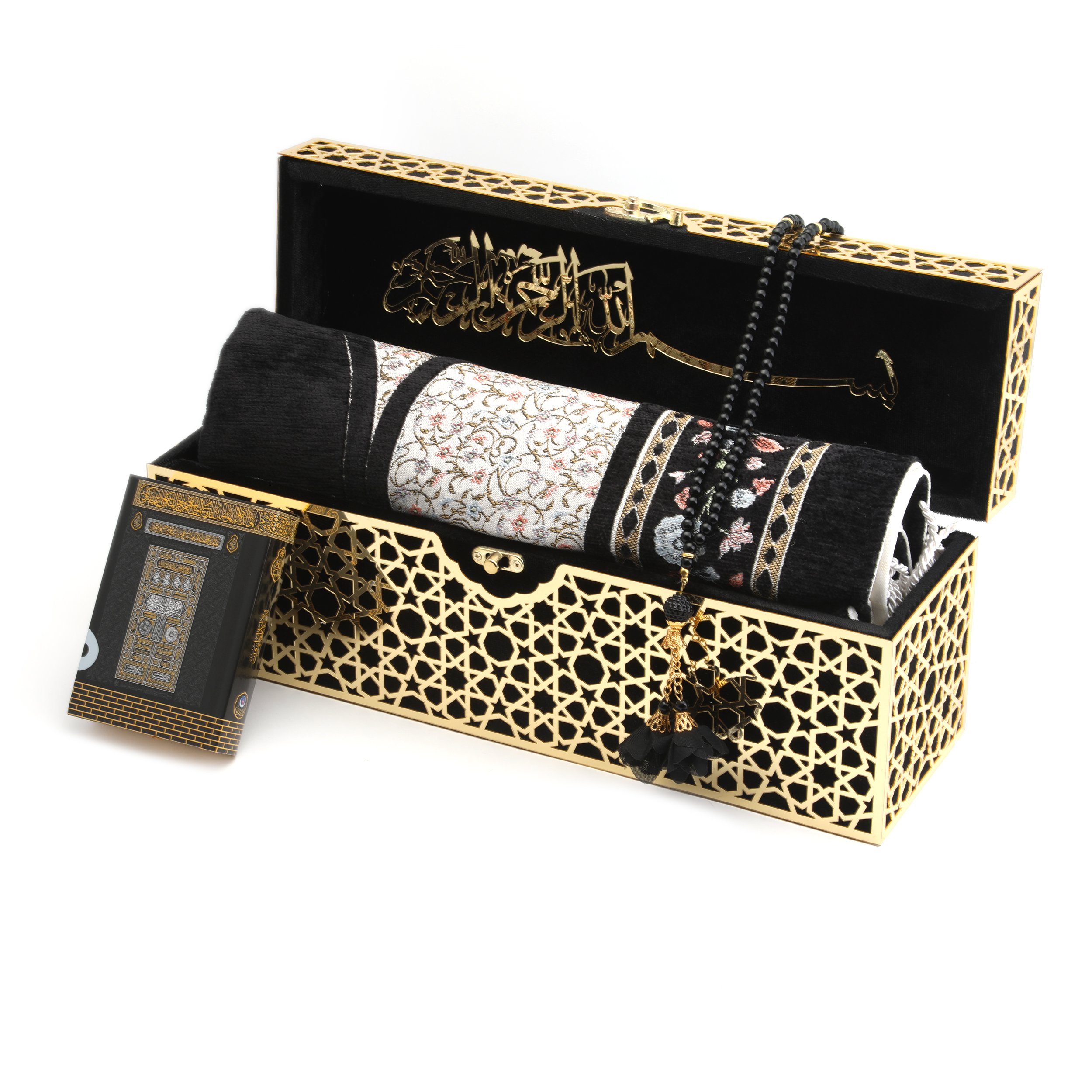 38x11x15 Cm Kadife Kaplı Seccade Kuran-ı Kerim Tesbih Kutusu Siyah
