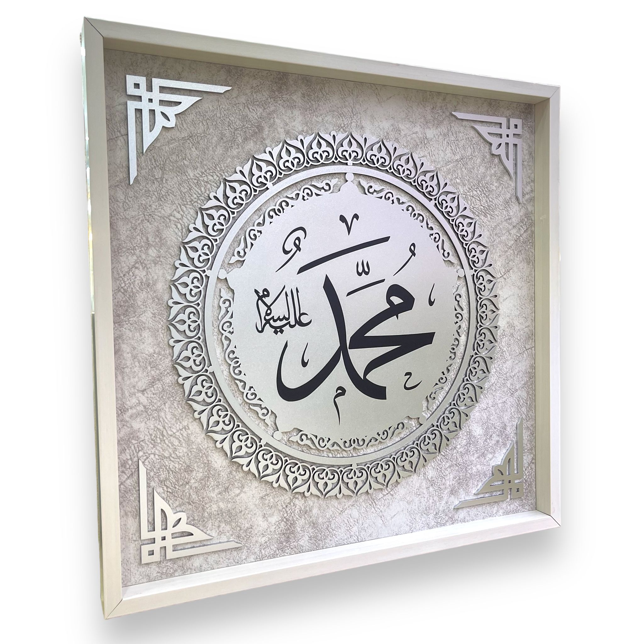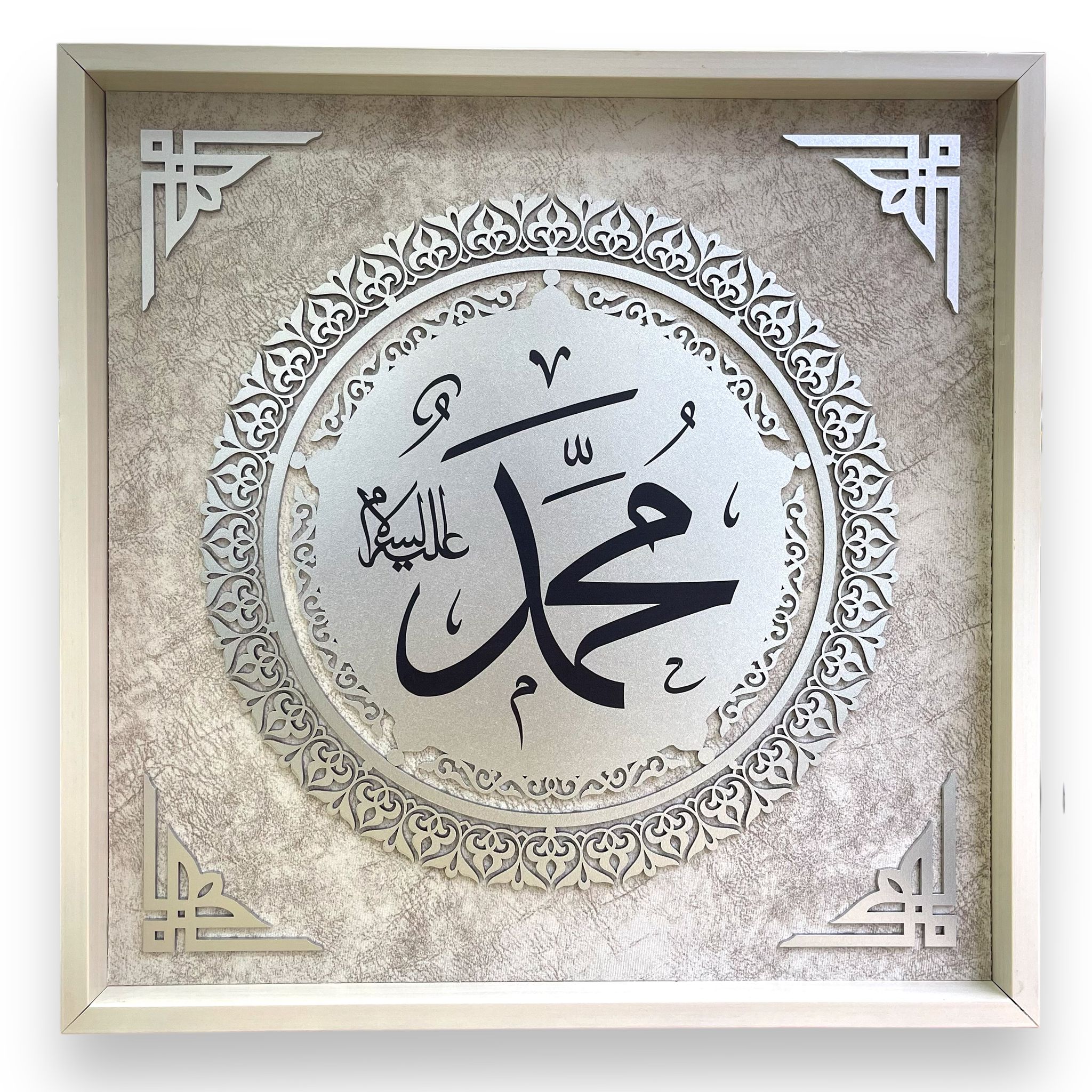 50x50 Cm İsmi Nebi Ahşap Koleksiyon Tablo Krem-Gümüş