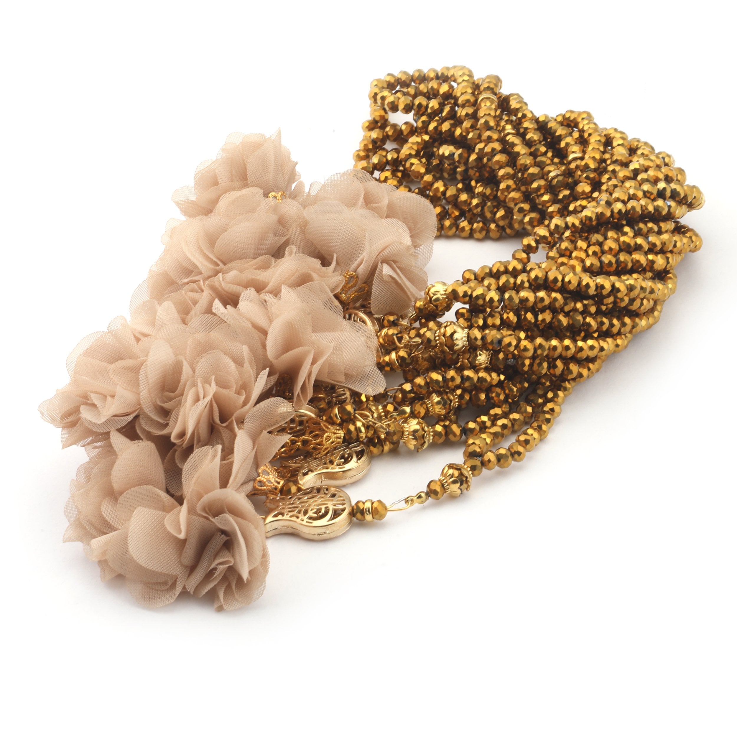 99'Luk 6 Mm Kristal İki Tül Güllü Tesbih (10 Adet) Gold