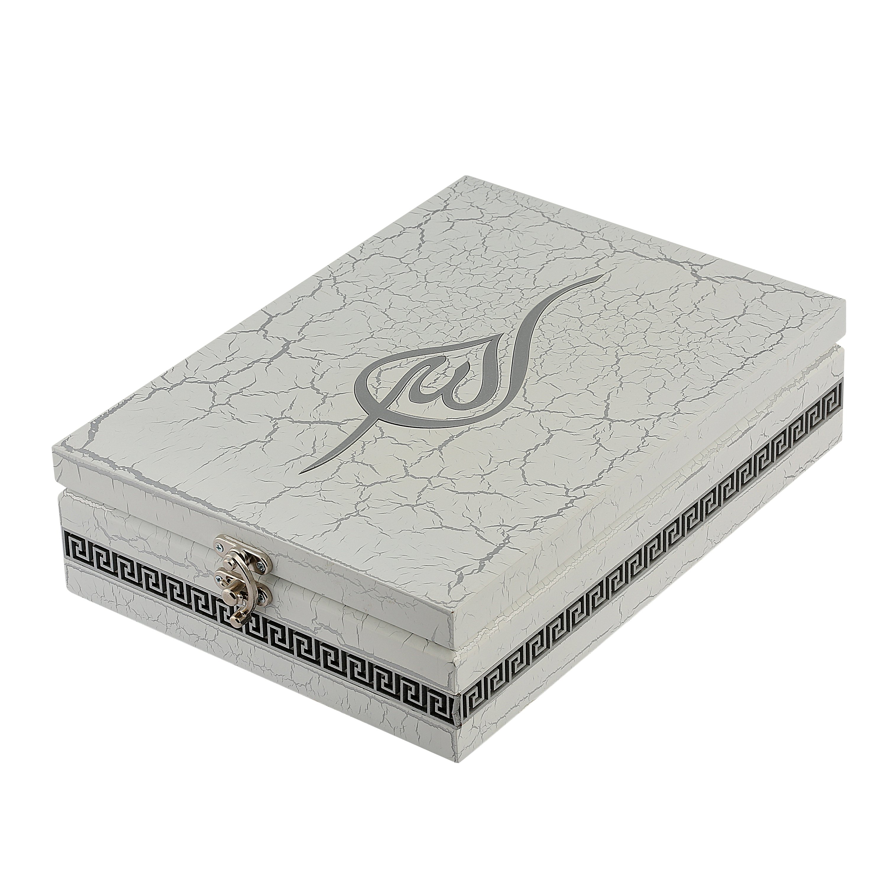 28x20 Cm Ahşap Çatlatma Kutulu Kuran-ı Kerim Seti Gri