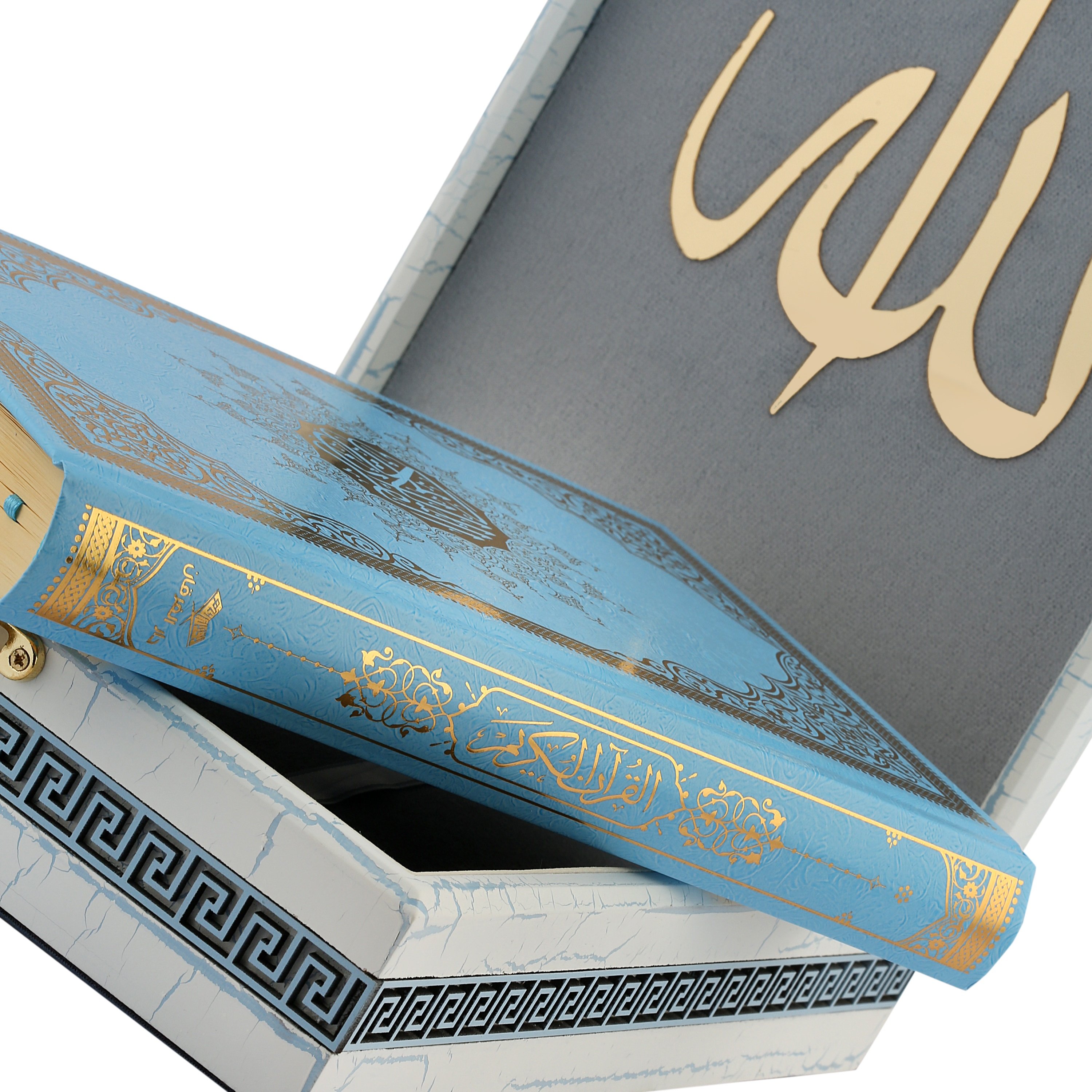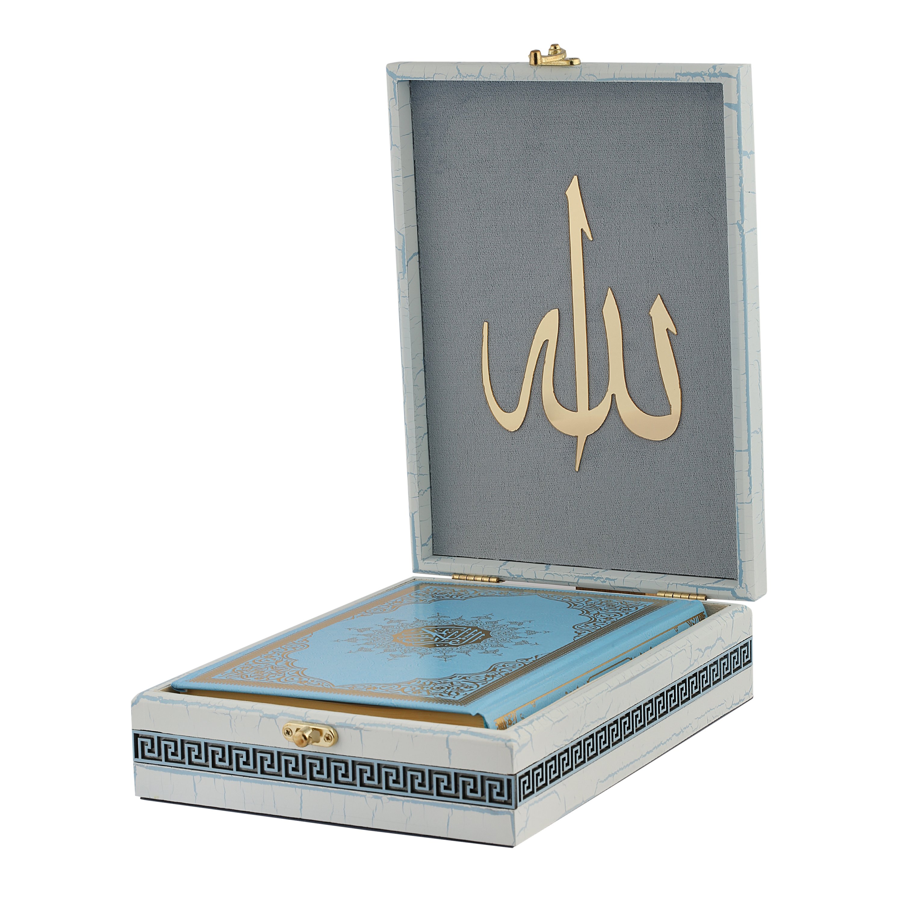 28x20 Cm Ahşap Çatlatma Kutulu Kuran-ı Kerim Seti Mavi