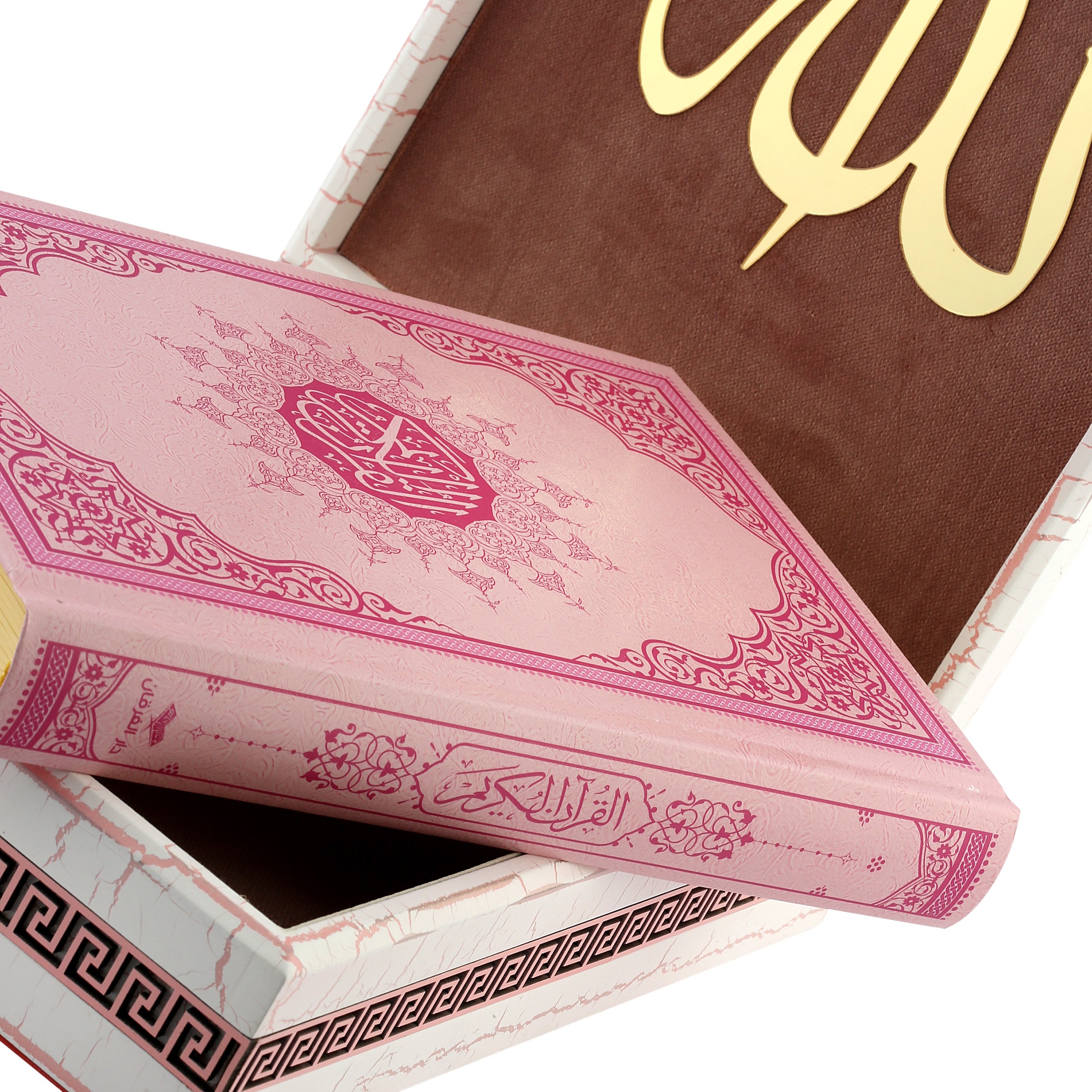 28x20 Cm Ahşap Çatlatma Kutulu Kuran-ı Kerim Seti Pembe