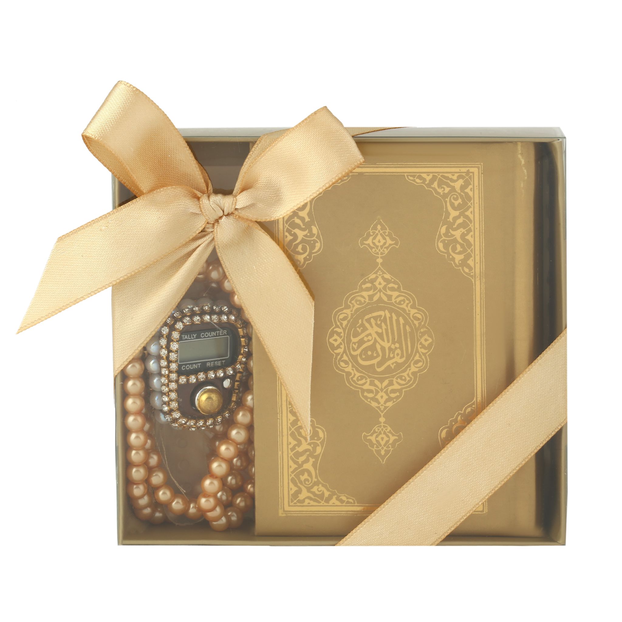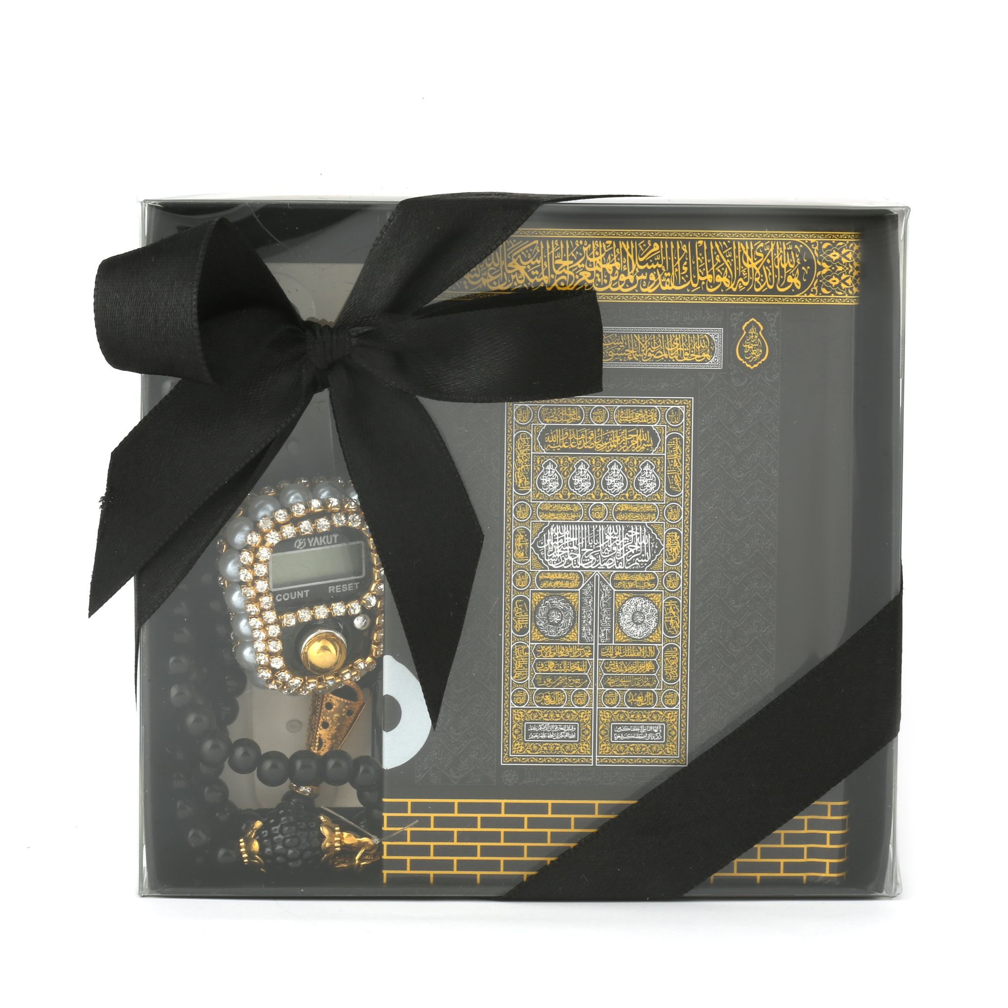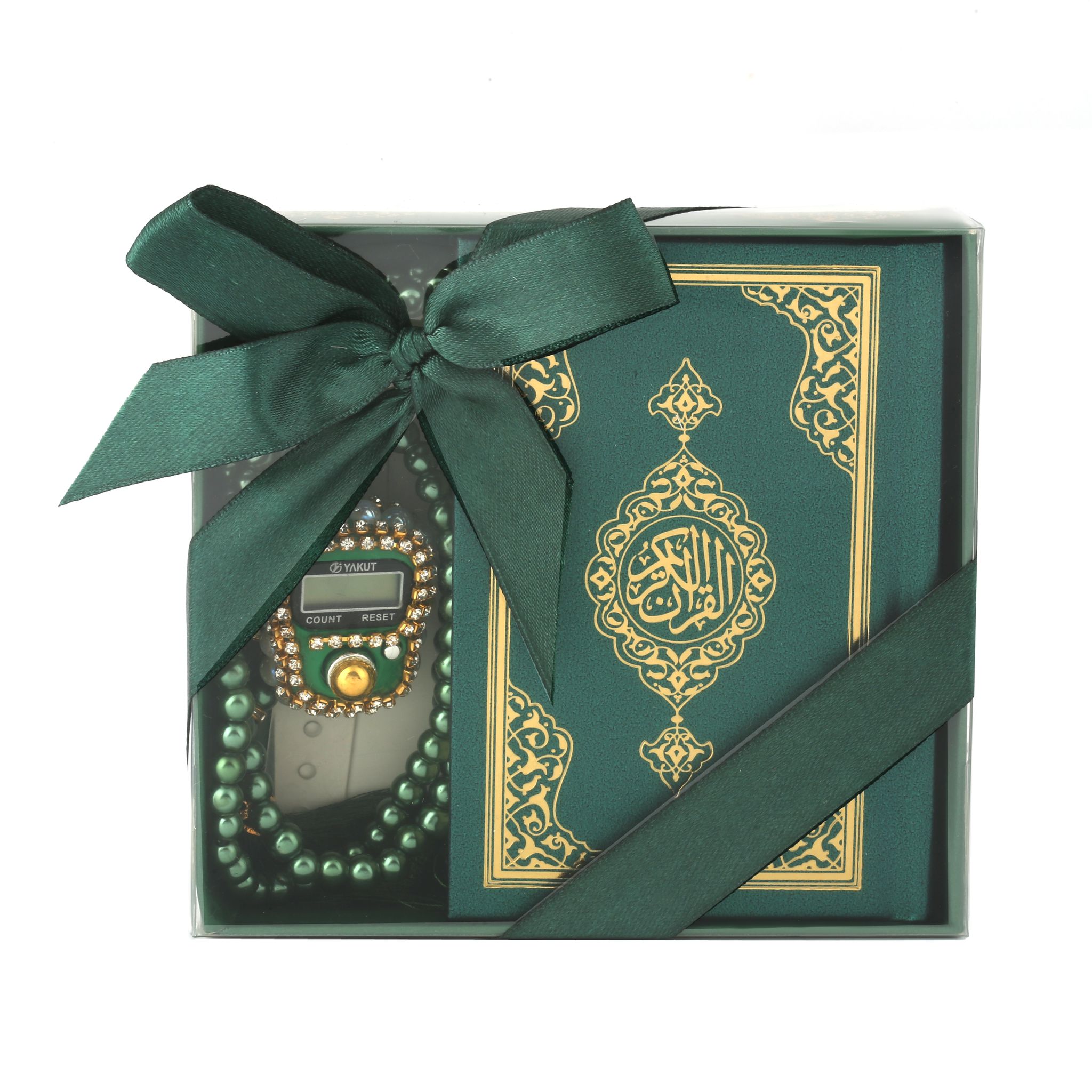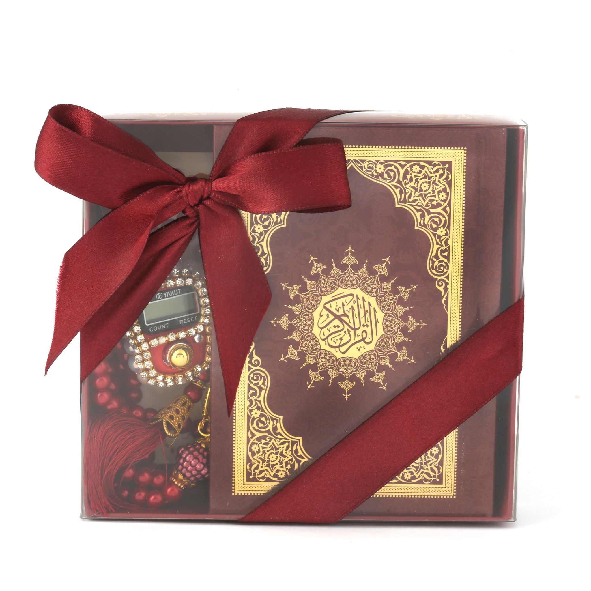 - Asetat kutu içerisinde 99'luk 6 mm Vavlı İnci Tesbih, Taşlı Zikirmatik ve 8x12 Cm Cep Boy Kuran-ı Kerim ile beraber sunulur.