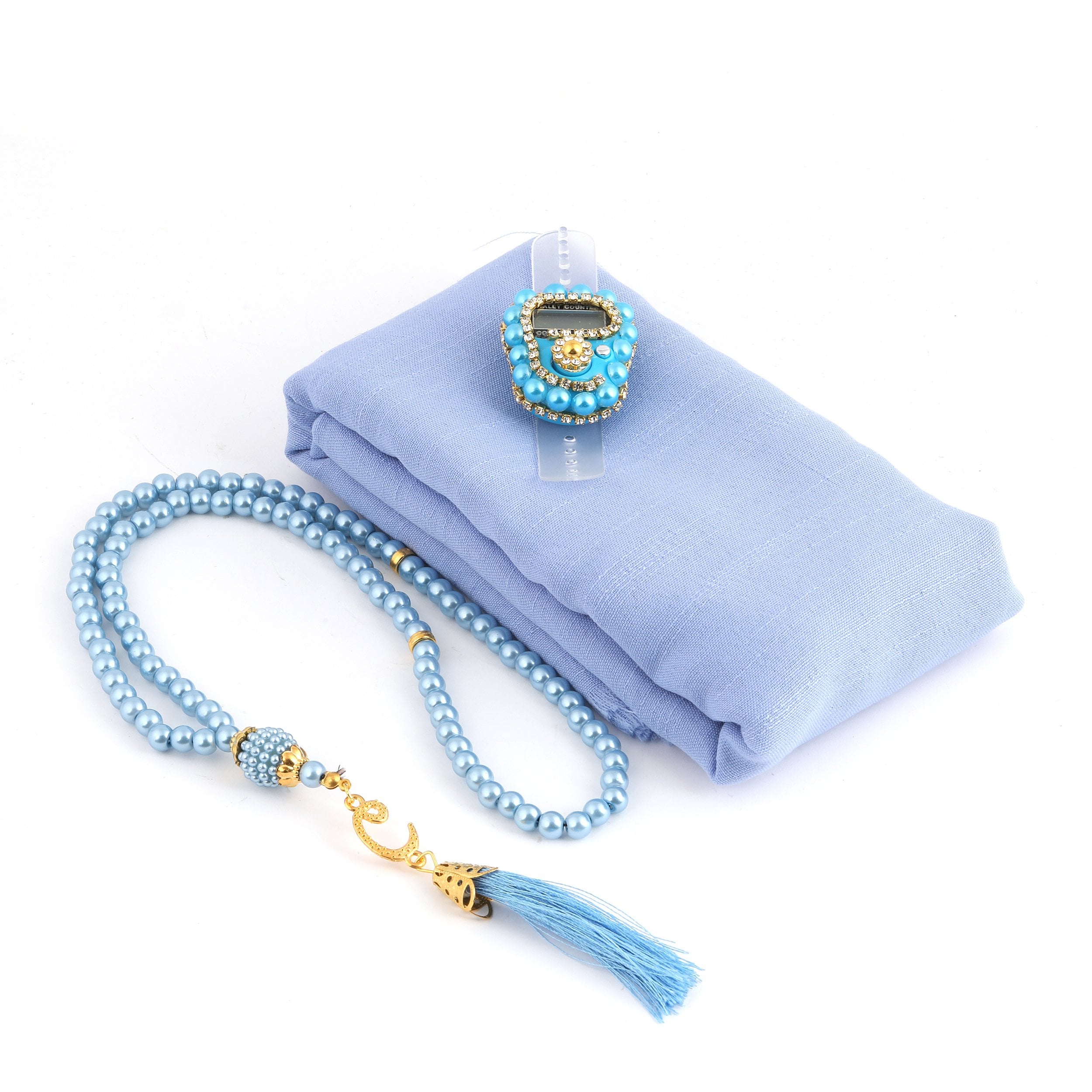 Asetat Çantalı Eşarp Zikirmatik Tesbih Seti