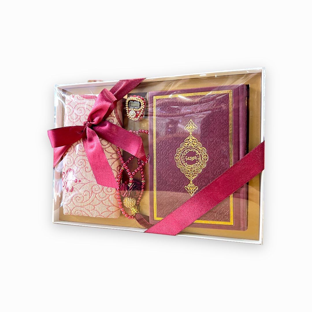 Asya Serisi Kuran-ı Kerim Seccade Tesbih Seti Bordo