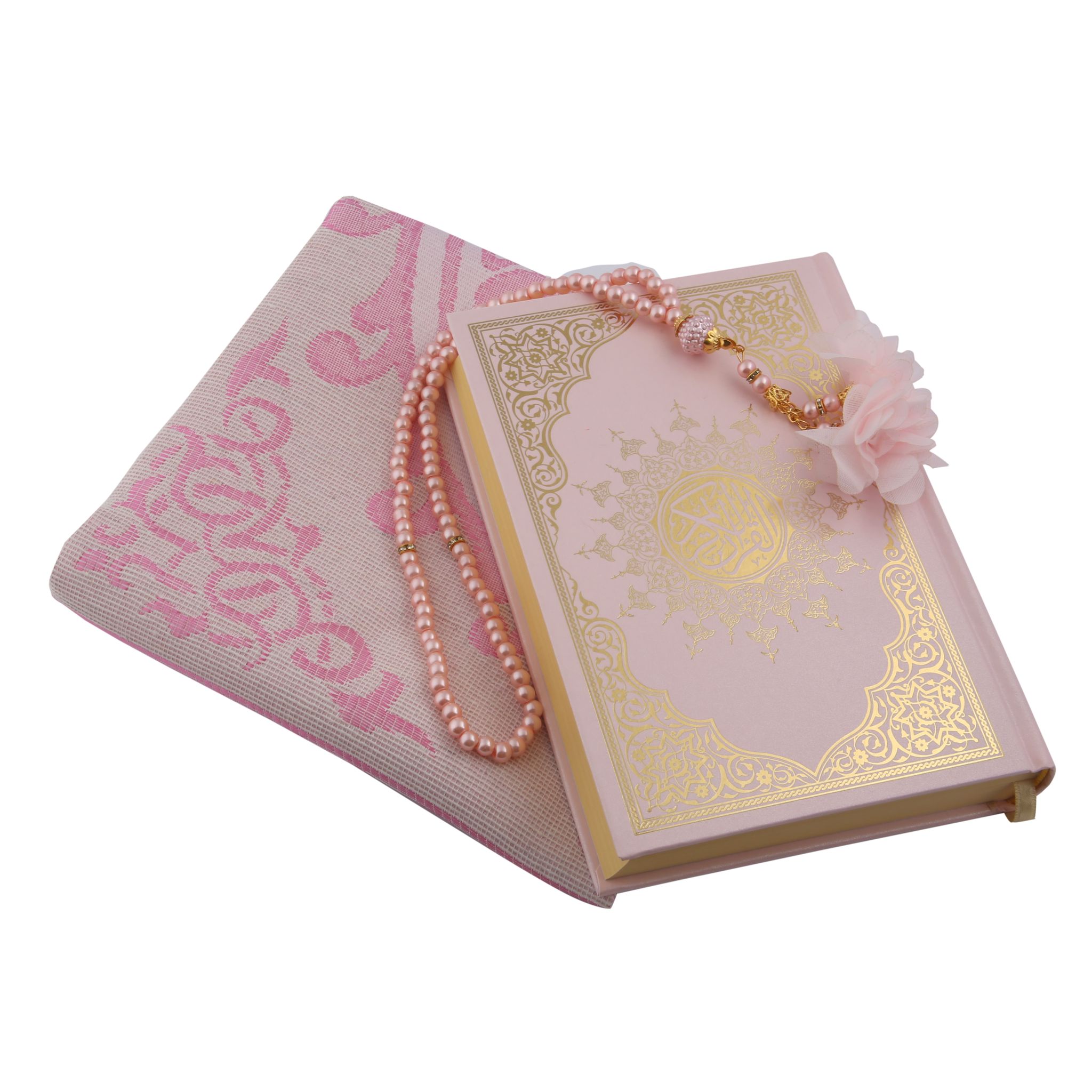 Azra Serisi Eid Mubarak Aksesuarlı Kuran-ı Kerim Seti Pembe - Bilgisayar Hatlı