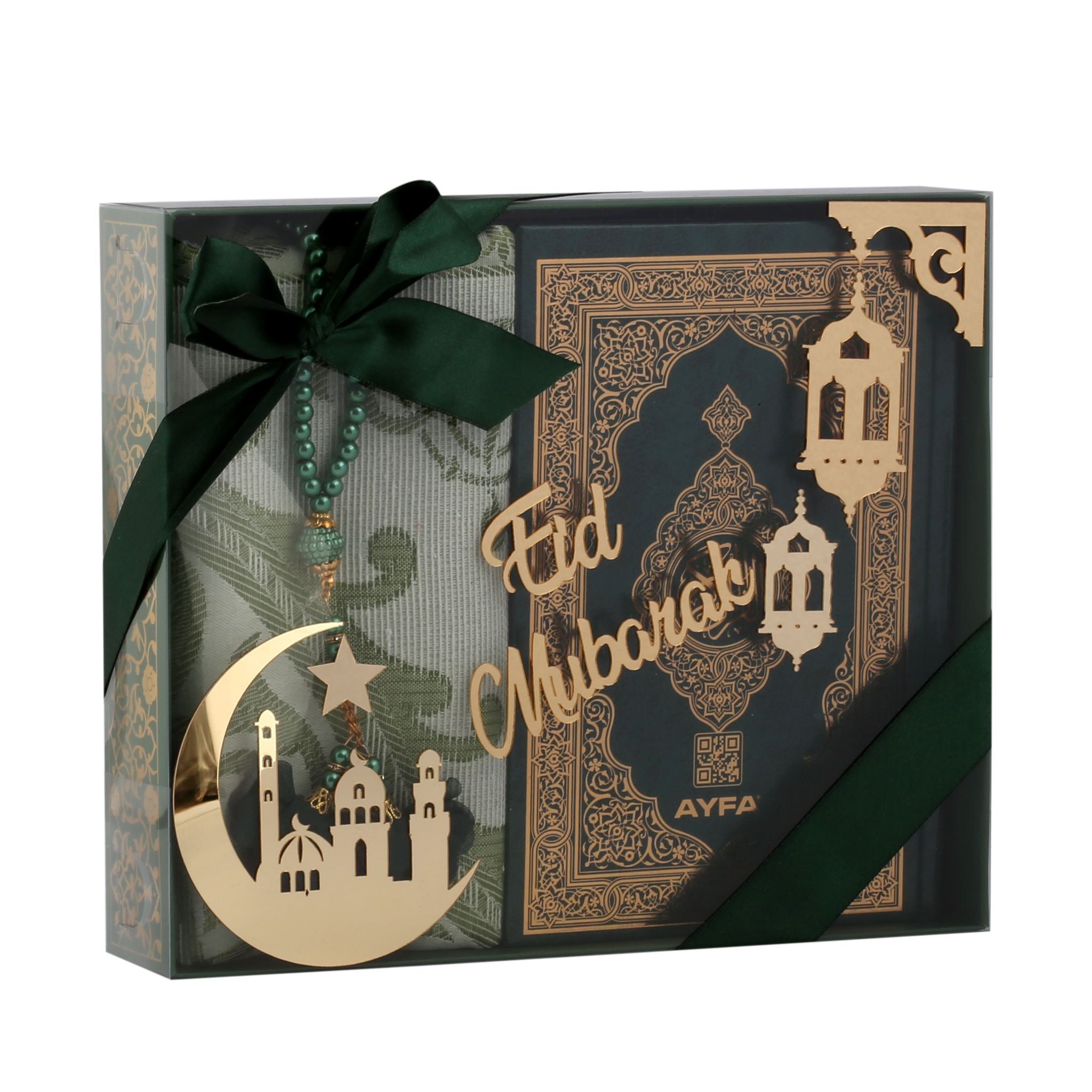 Azra Serisi Eid Mubarak Aksesuarlı Kuran-ı Kerim Seti Yeşil - Bilgisayar Hatlı