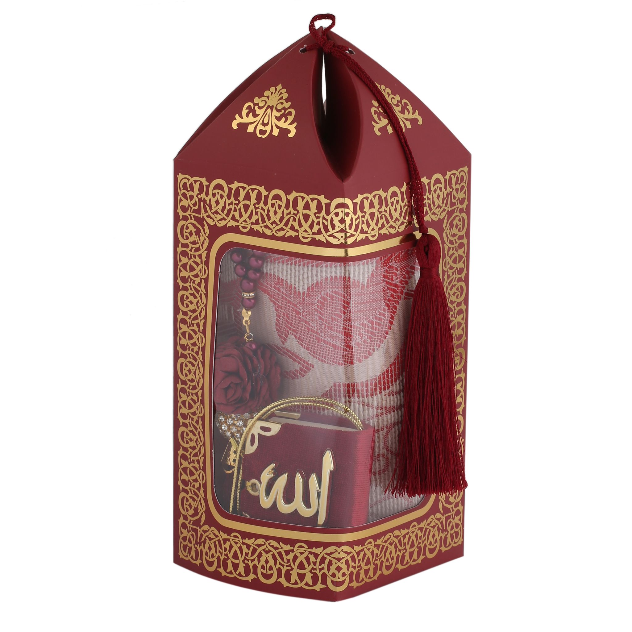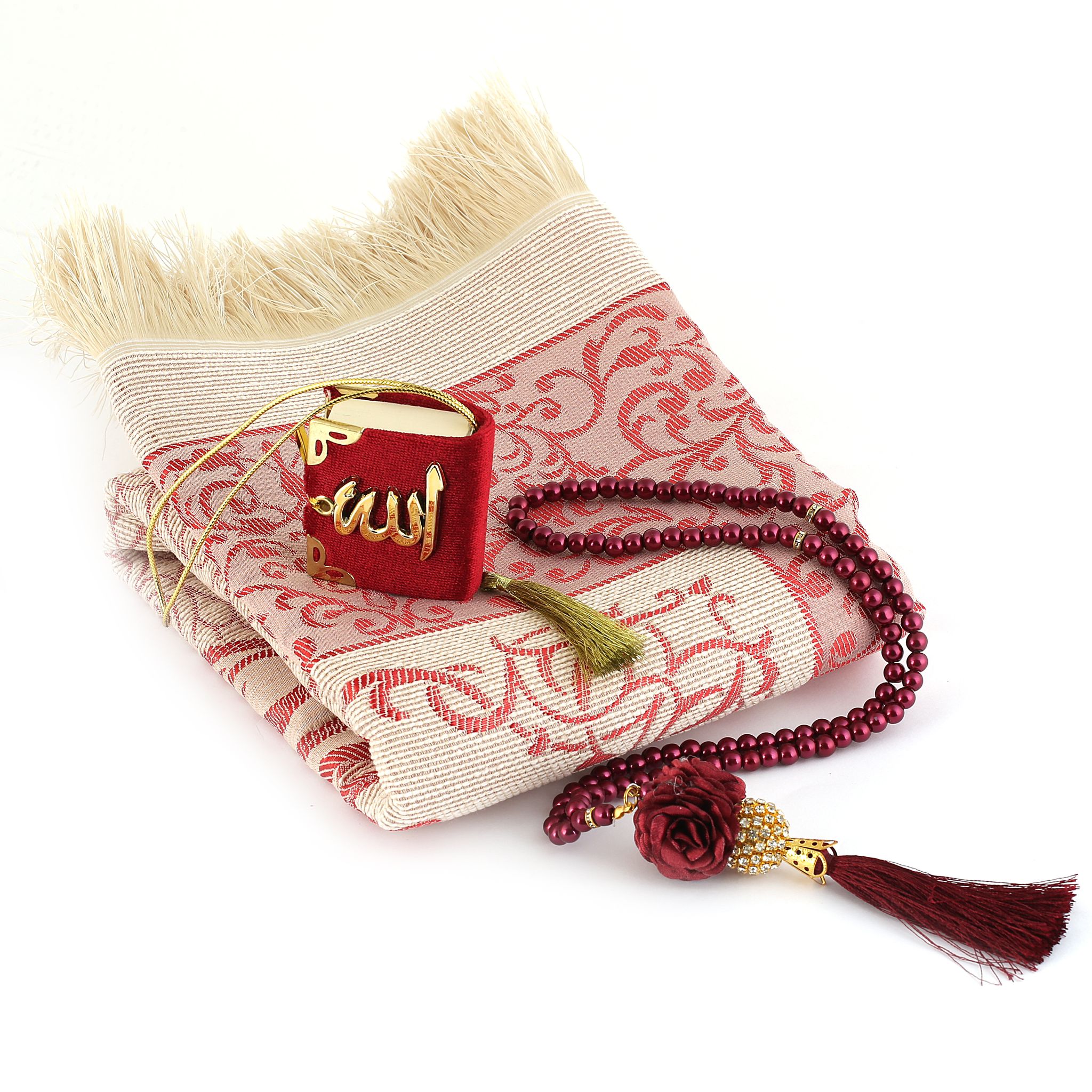 Bade Serisi Seccade Mini Kuran-ı Kerim Tesbih Seti Bordo