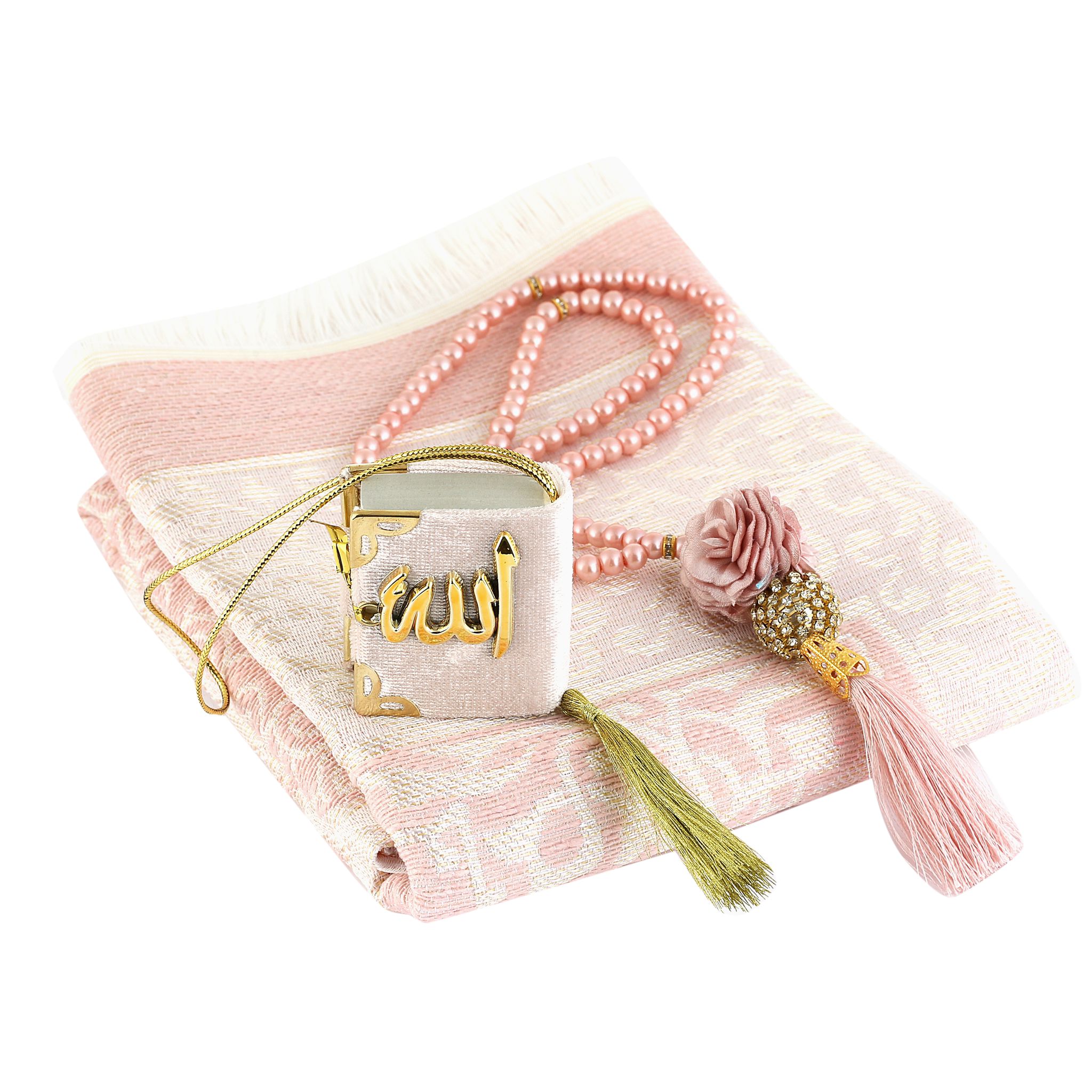 Bade Serisi Seccade Mini Kuran-ı Kerim Tesbih Seti Pembe