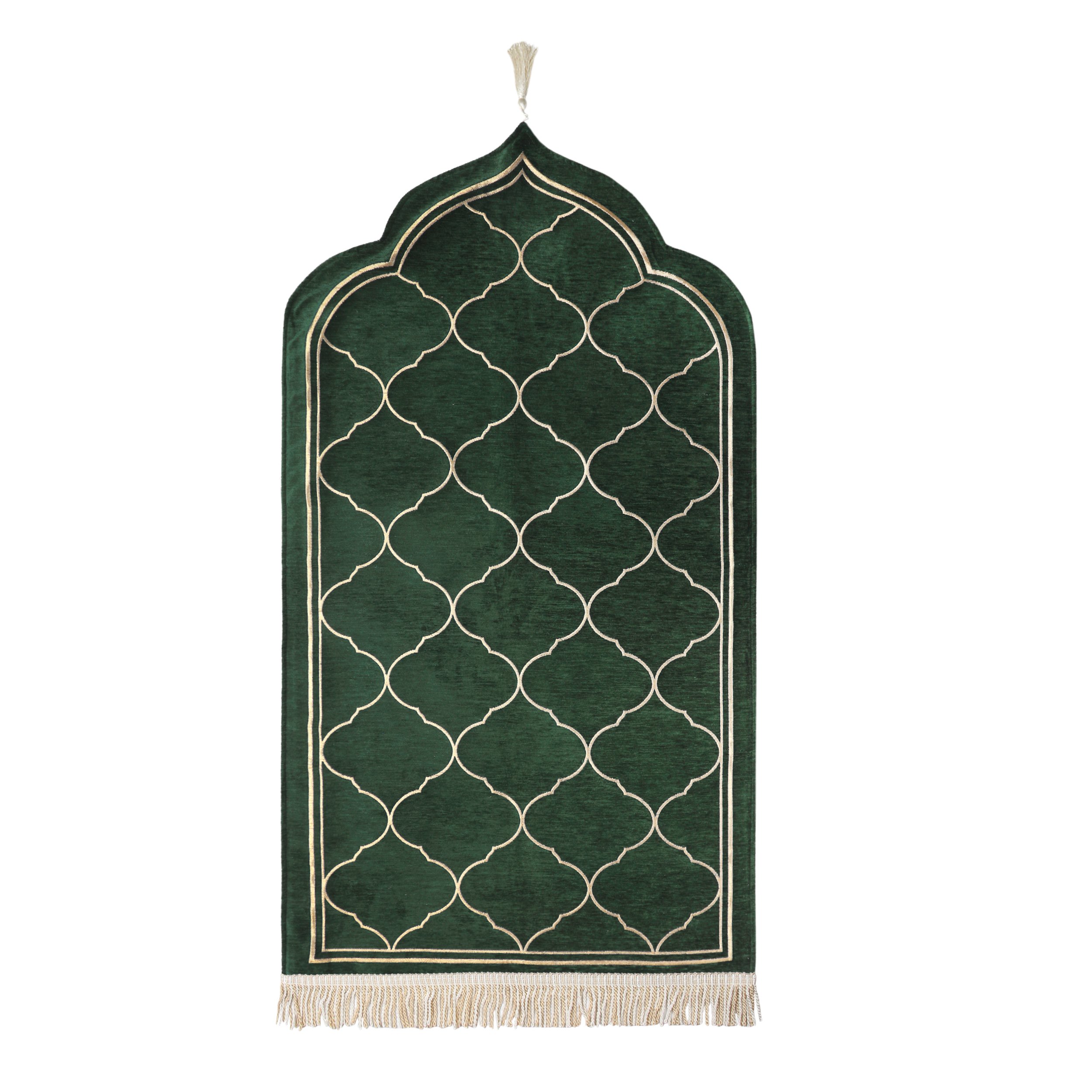 Biyeli/Düz Astarlı Lüks Şönil Seccade Yeşil