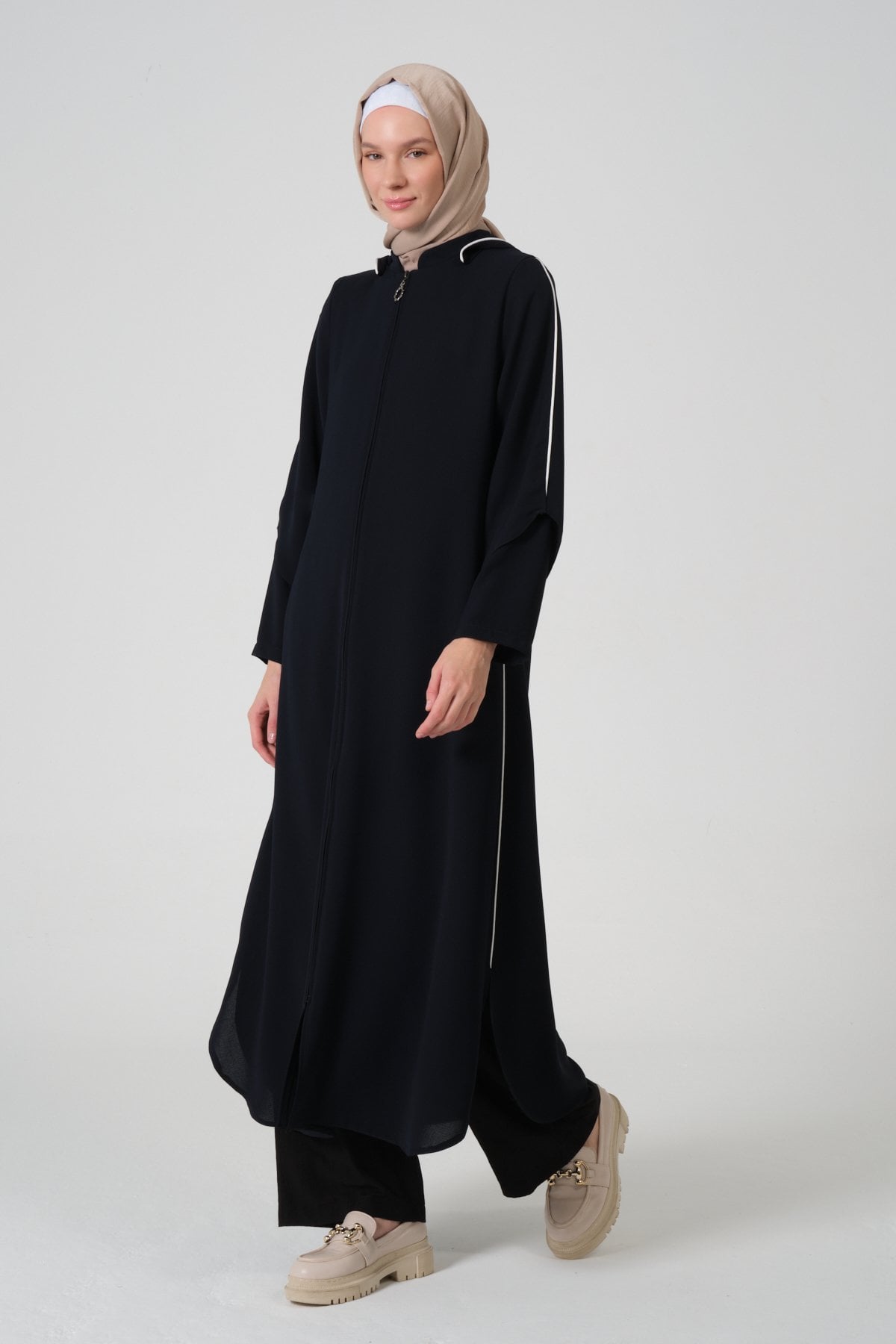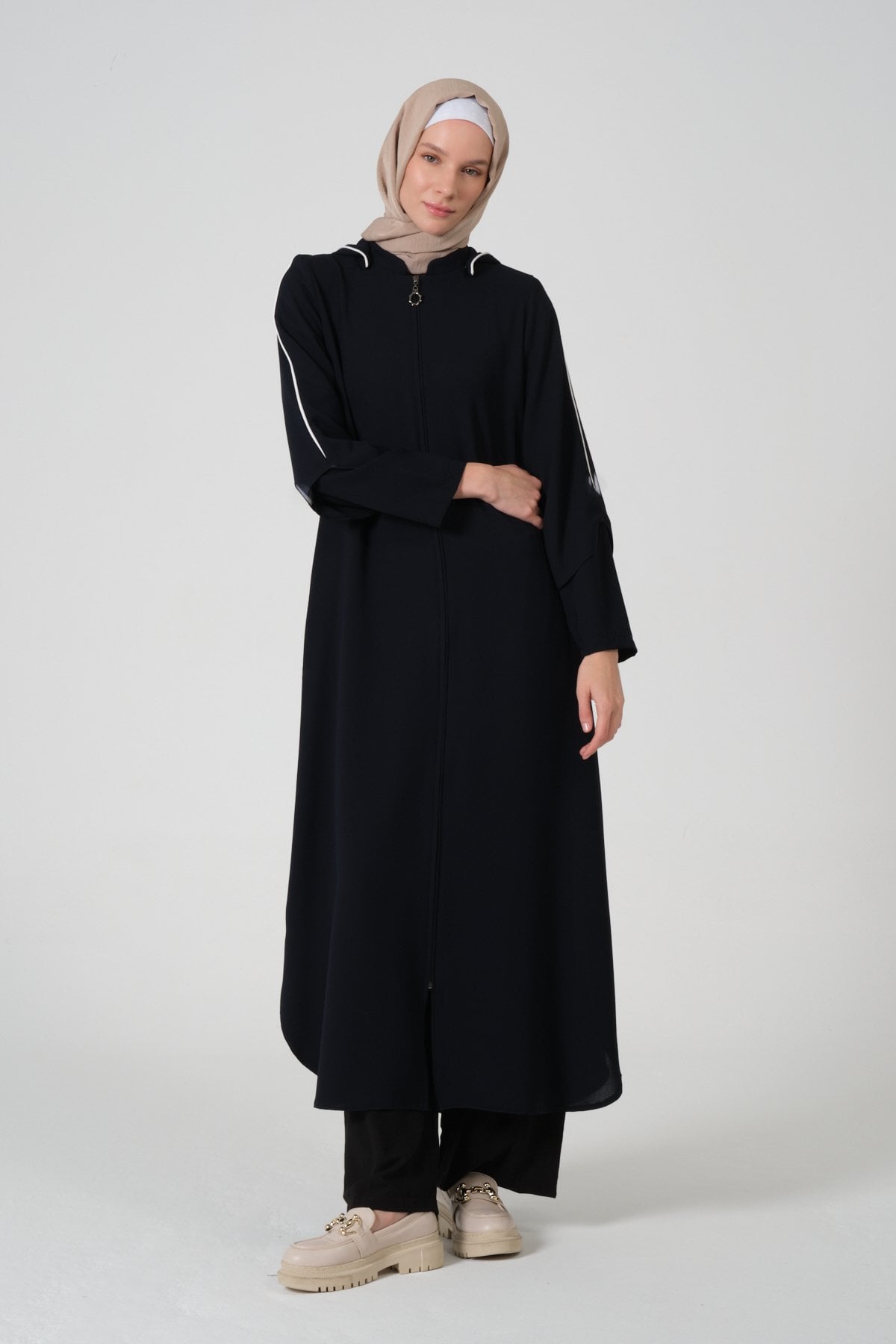 Buhara Kumaş Kapüşonlu Biyeli Ferace