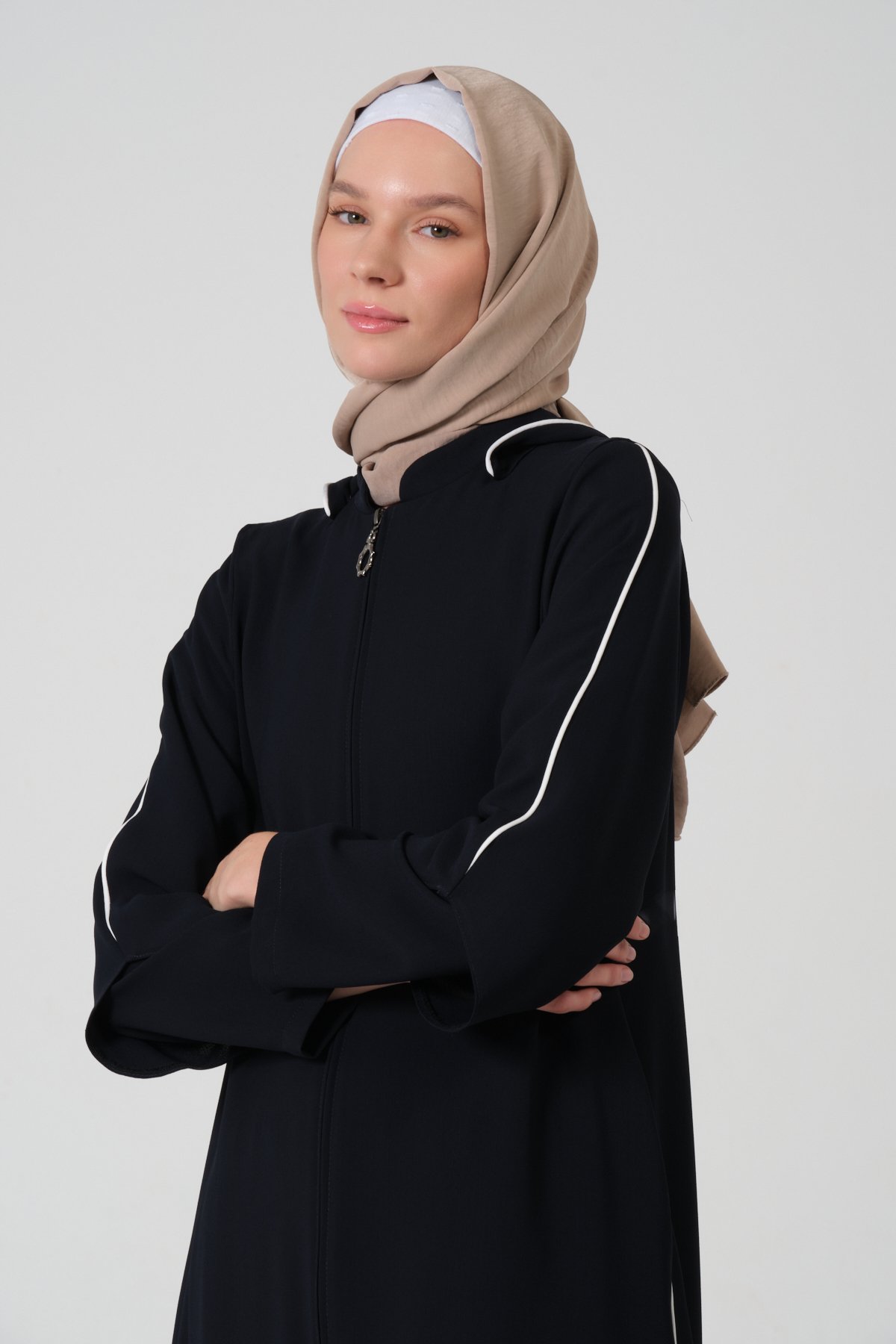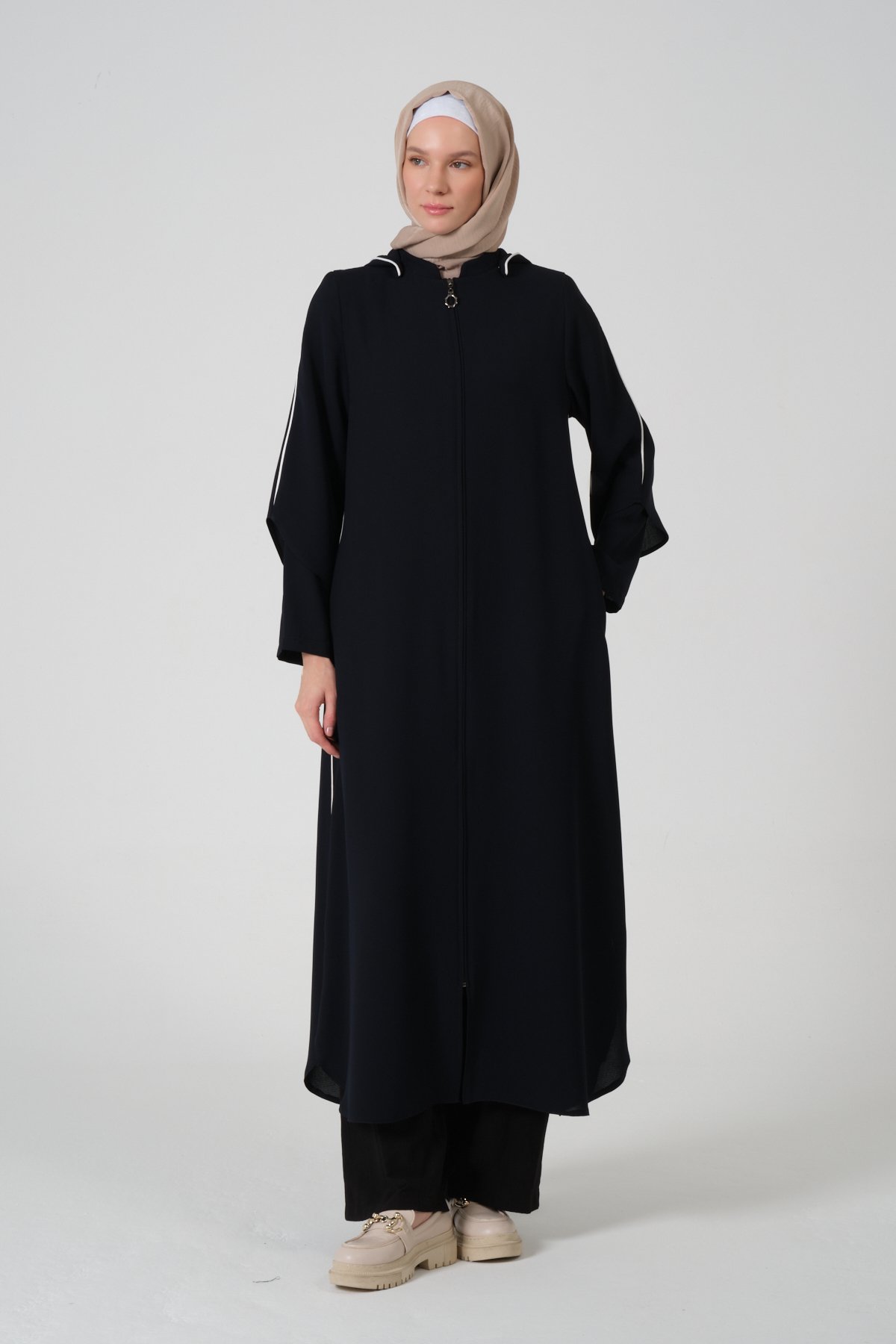 Buhara Kumaş Kapüşonlu Biyeli Ferace 44
