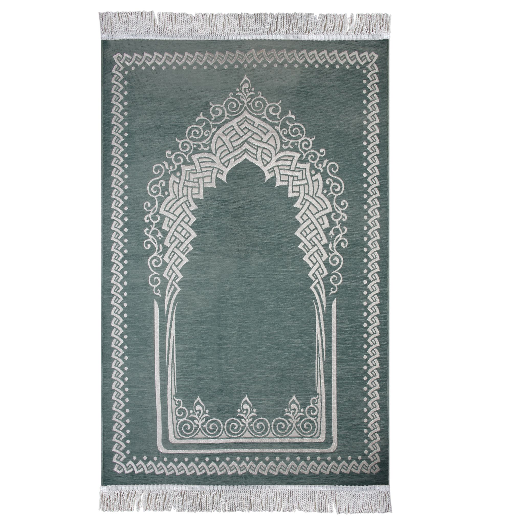 Desenli Mihraplı Lüks Saçaklı Şönil Seccade Gri