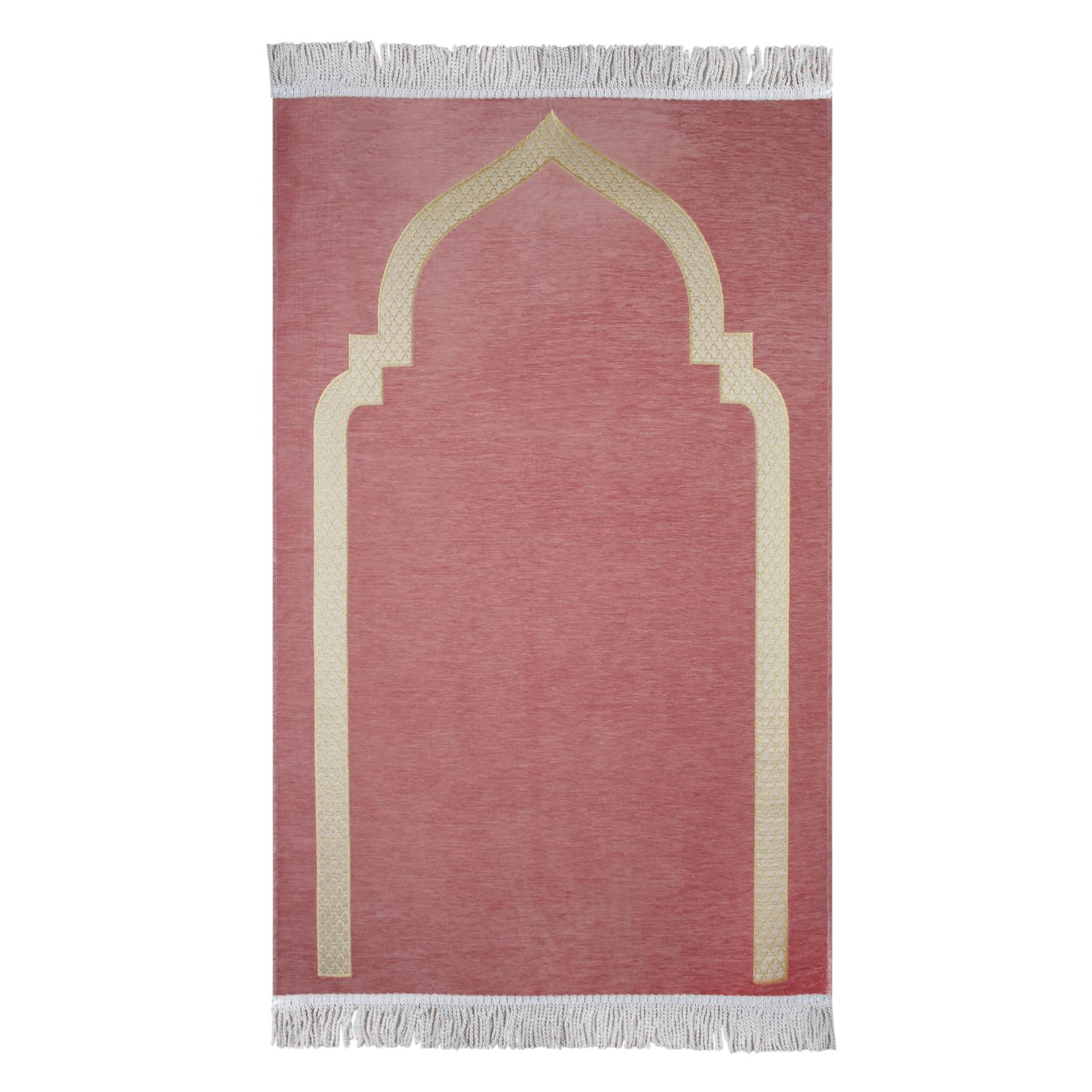 Düz Mihraplı Lüks Saçaklı Şönil Seccade Pembe