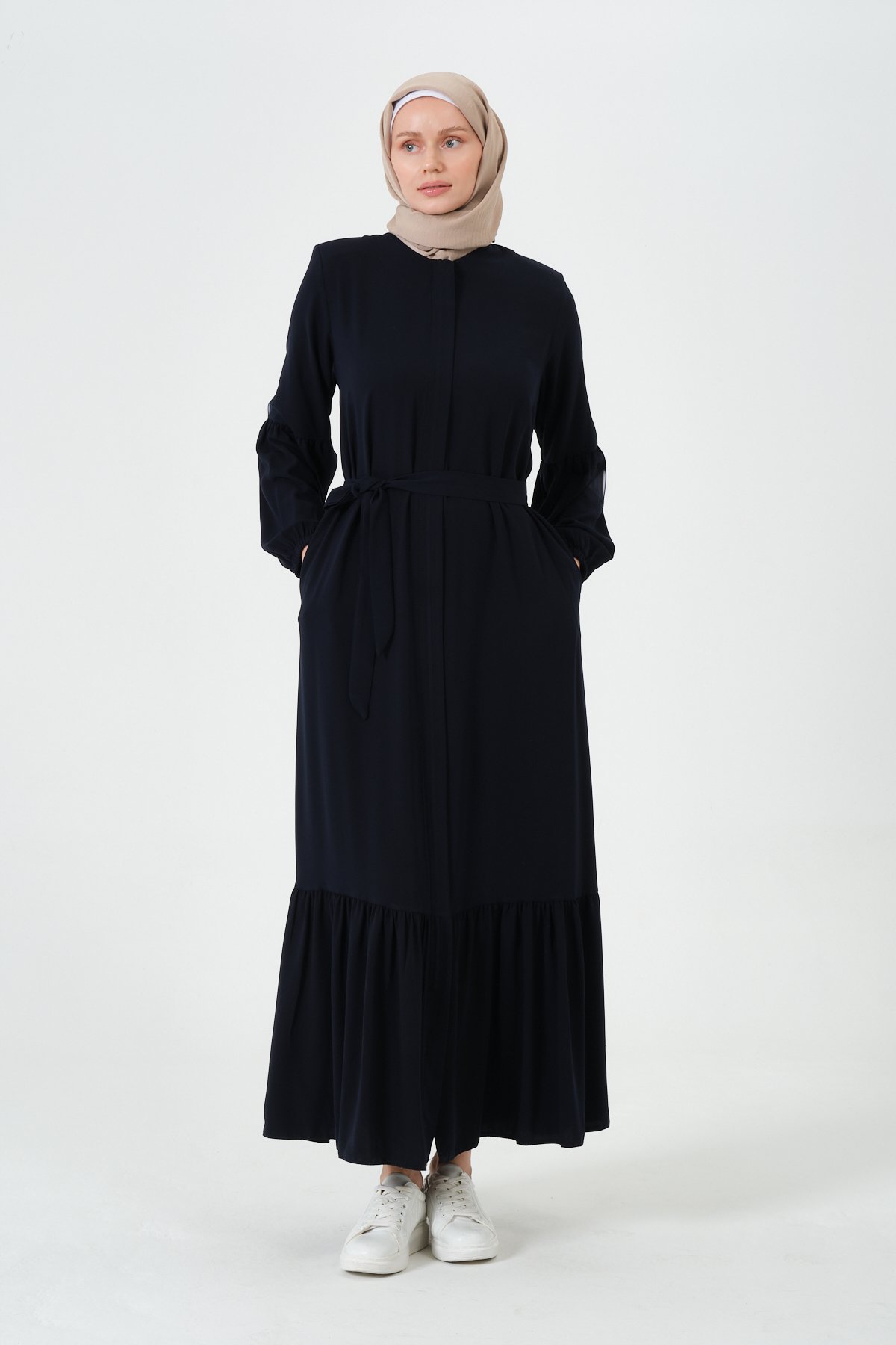 Rabia Kumaş Eteği Büzgülü Ferace Lacivert - 38