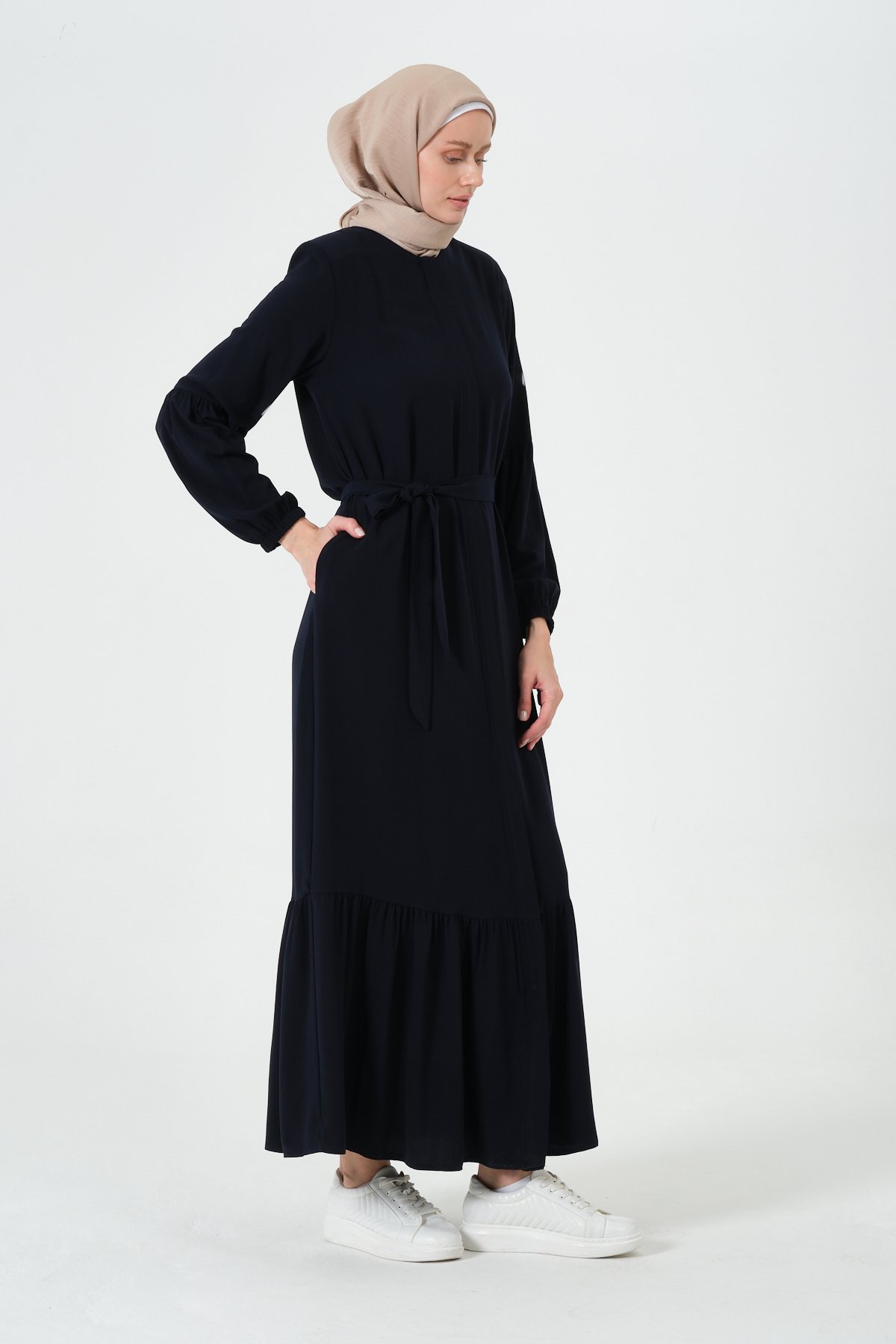 Rabia Kumaş Eteği Büzgülü Ferace: