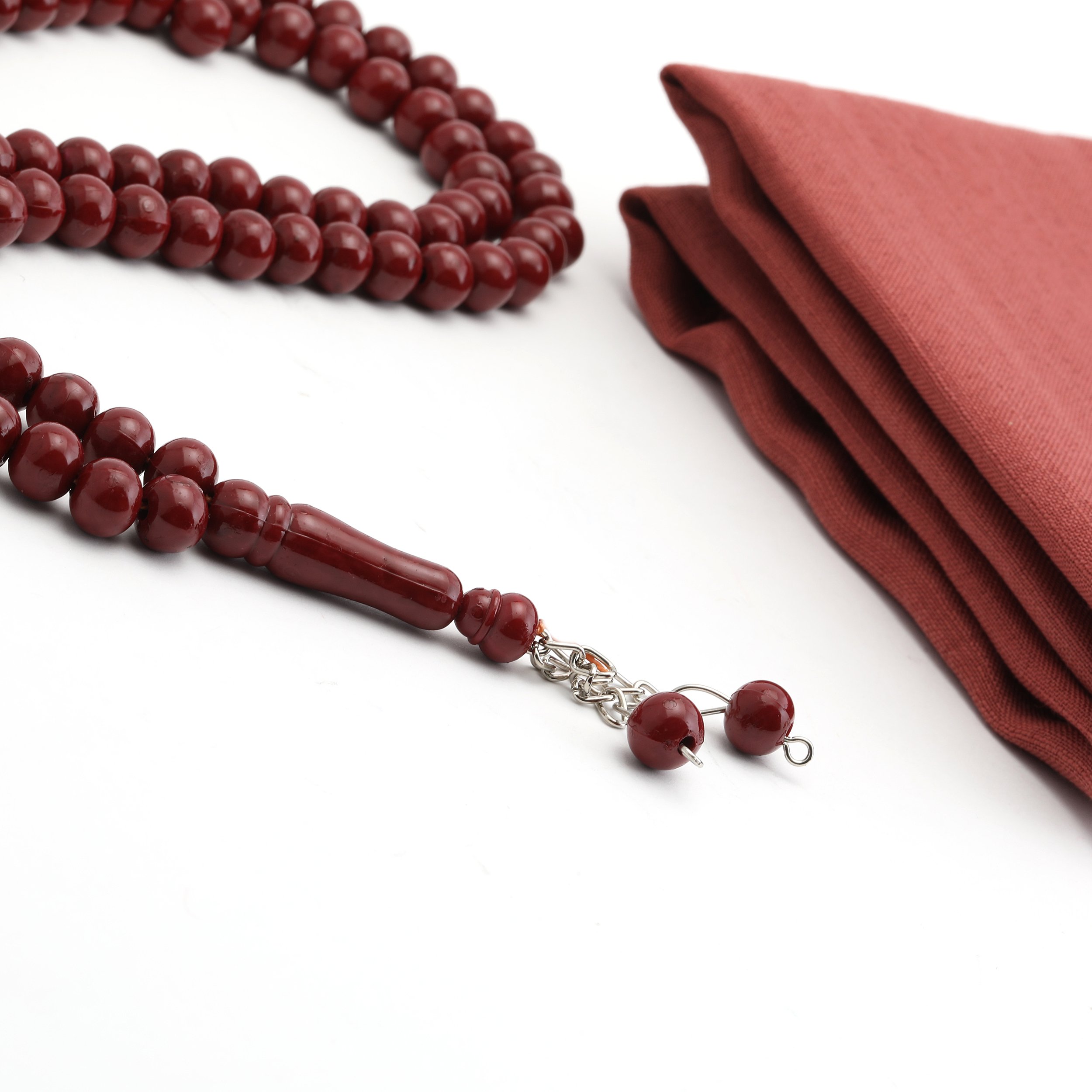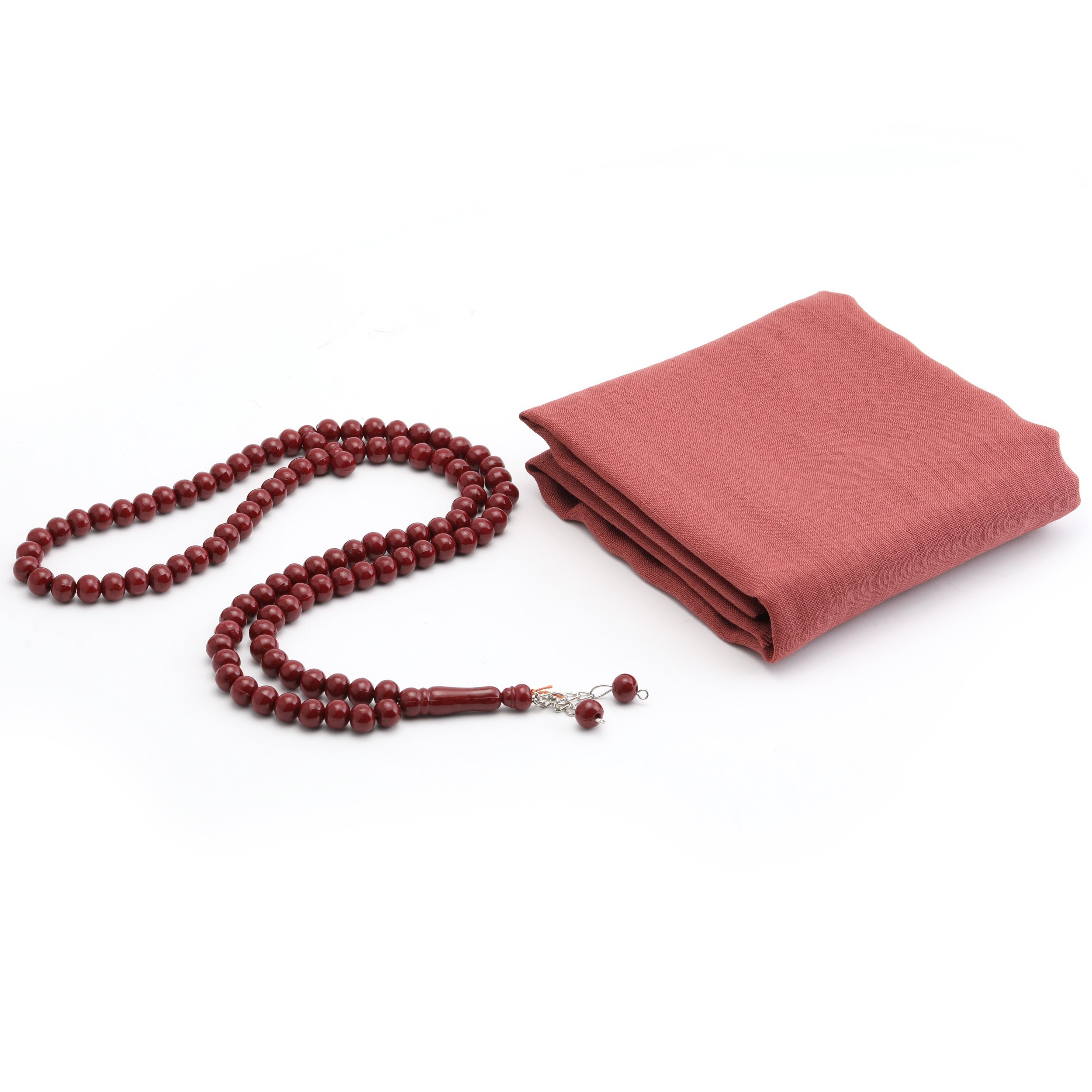 - Tül Kese içerisinde 100 Cm Flamlı Düz Eşarp Ve 99'luk 10 mm Zincirli Tesbih ile beraber sunulur.