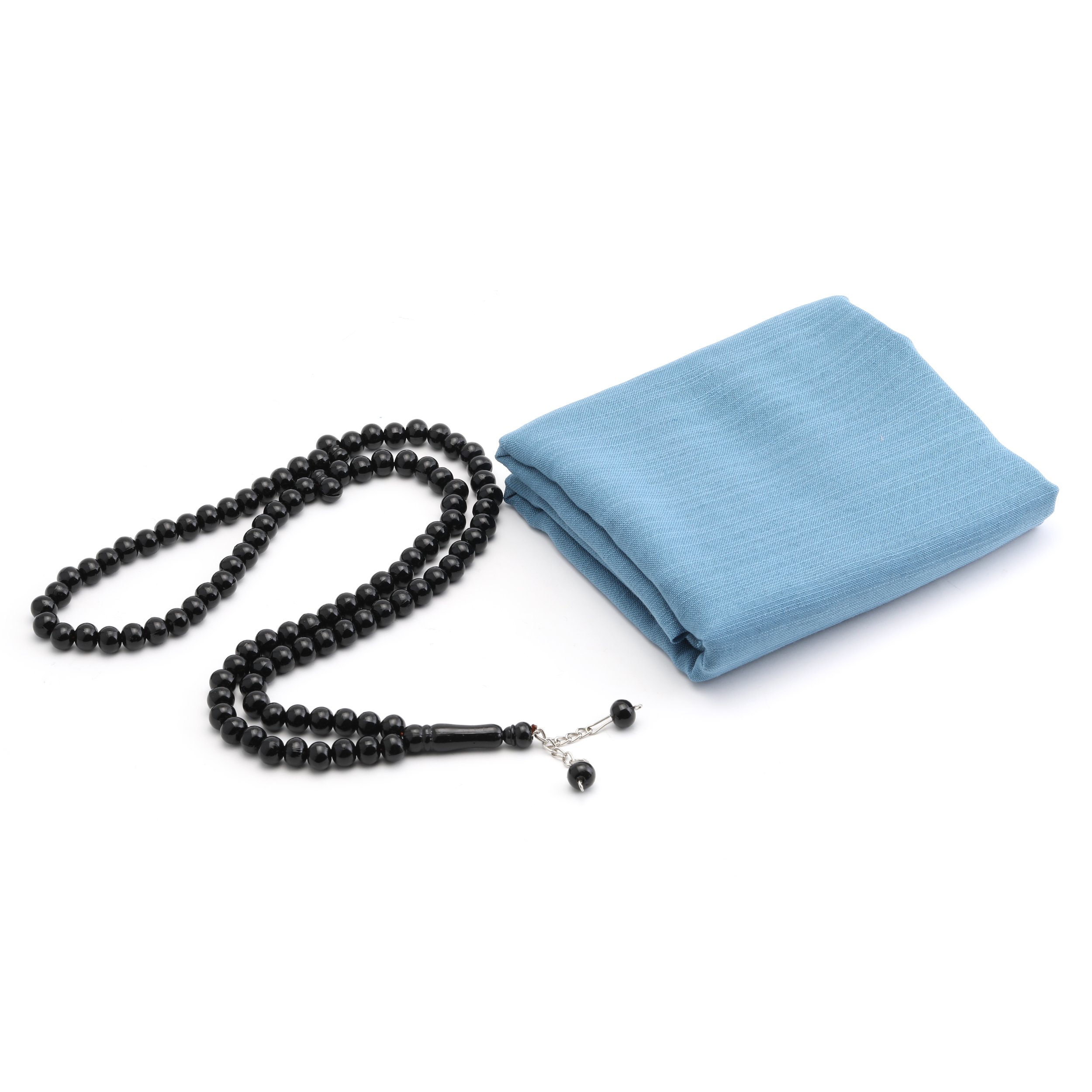 Hediyelik Eşarp Tesbih Tül Kese Seti Mavi