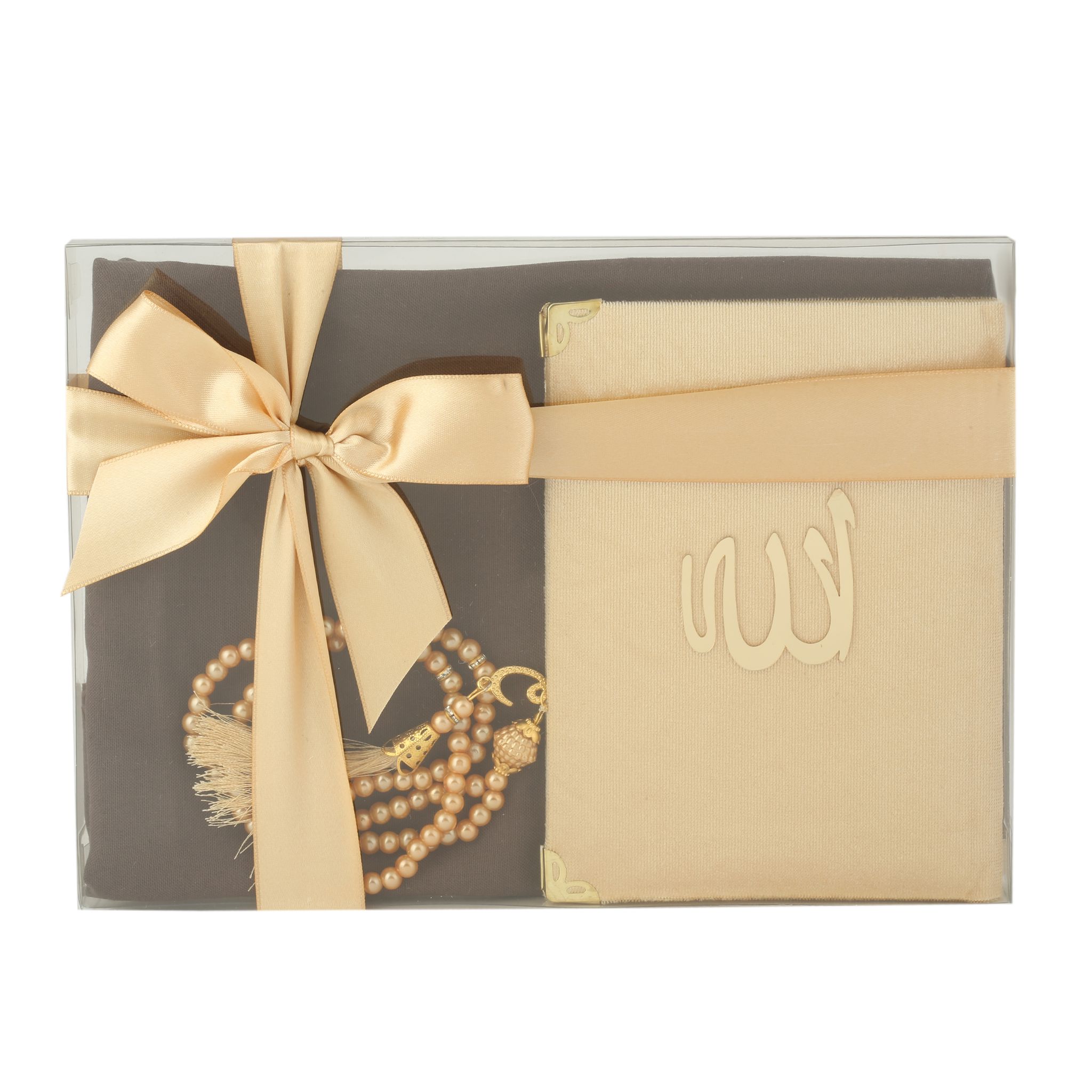 - Asetat kutu içerisinde 99'luk 6 mm Vavlı İnci Tesbih, 100 Cm Düz Saçaklı Renkli Pamuk Eşarp ve 12x16 Cm Çanta Boy 128 Sayfa Bilgisayar Hatlı Kadife Arapça Yasin ile beraber sunulur.